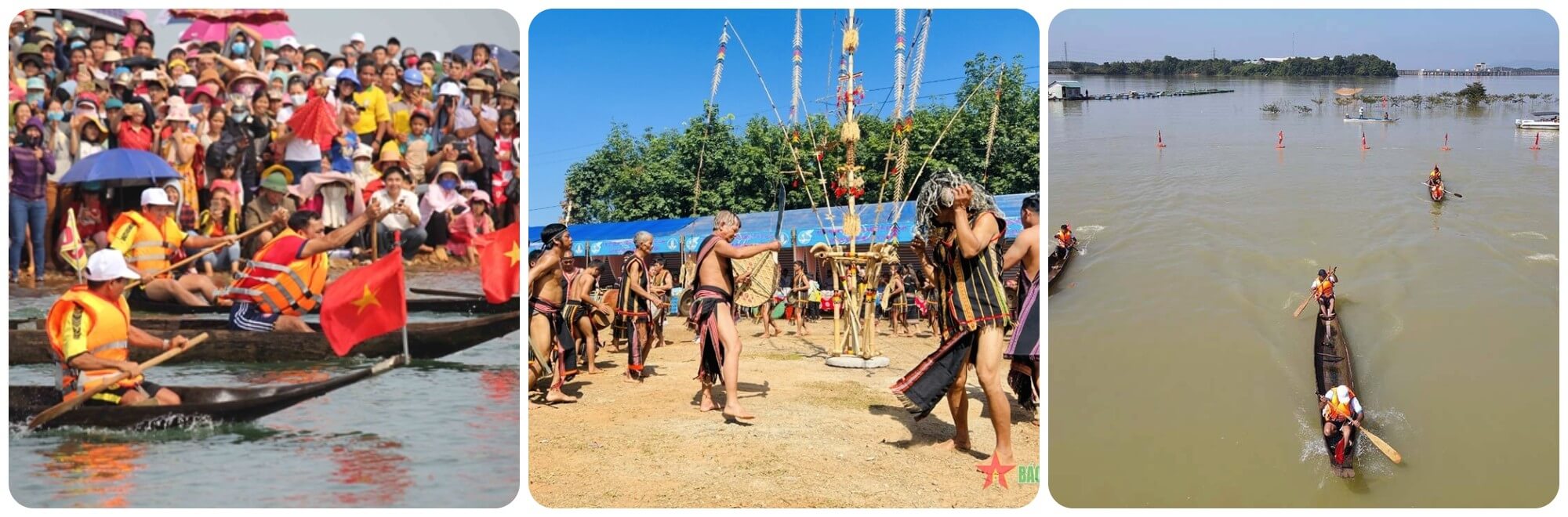 Ngày nay,mặc dù chiến tranh đã lùi xa và chỉ còn hiện diện trong những trang sách lịch sử hay những câu chuyện truyền miệng,những chiếc thuyền độc mộc – biểu tượng quen thuộc của vùng đất Tây Nguyên – vẫn tiếp tục được người dân sử dụng trong cuộc sống hàng ngày. Chúng không chỉ là phương tiện di chuyển trên sông,giúp người dân qua lại giữa các bờ mà còn đóng vai trò quan trọng trong việc đánh bắt cá,cung cấp nguồn thực phẩm chính cho các gia đình ven sông. Nhưng điều đặc biệt nhất là khi mùa lễ hội đến,những chiếc thuyền này lại khoác lên mình một diện mạo khác. Chúng không còn chỉ là phương tiện đơn thuần mà trở thành hiện thân sống động của văn hóa,truyền thống và niềm tự hào sâu sắc của cả một vùng đất Tây Nguyên hùng vĩ. Trong những dịp ấy,tiếng hò reo,tiếng trống chiêng vang vọng khắp nơi,tạo nên một bầu không khí sôi động,đậm chất lễ hội.