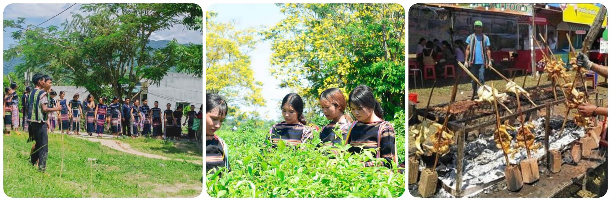 Đêm lửa trại trong lễ hội là một kỷ niệm mà tôi không thể quên. Khi ánh lửa bập bùng soi sáng cả một góc trời,mọi người quây quần bên nhau,ca hát,nhảy múa và kể những câu chuyện về vùng đất này. Những giai điệu cồng chiêng vang vọng giữa không gian đậm chất núi rừng khiến tôi cảm nhận được sự linh thiêng và vẻ đẹp của văn hóa Tây Nguyên. Đây không chỉ là một hoạt động giải trí mà còn là dịp để chúng tôi,những người trẻ,thêm yêu và hiểu sâu hơn về văn hóa của quê hương mình. Ngoài ra,một trong những hoạt động mà tôi thích nhất tại lễ hội là được tự tay trải nghiệm quy trình chế biến chè. Ngồi giữa những đồi chè xanh mướt,dưới bầu trời trong xanh,tôi háo hức hái từng búp chè non,cẩn thận vò chè theo sự hướng dẫn của những người nông dân. Cảm giác khi được thưởng thức những ly trà thơm mát do chính tay mình làm ra là một trải nghiệm tuyệt vời không gì có thể sánh được. Bên cạnh đó,lễ hội còn có những gian hàng làm bánh truyền thống,nơi tôi được tự tay thử làm và nếm các món đặc sản hấp dẫn của quê nhà. Từ bánh ít lá gai đến các món ăn chế biến từ sắn,tất cả đều mang hương vị thân thuộc,mộc mạc nhưng đầy quyến rũ.
