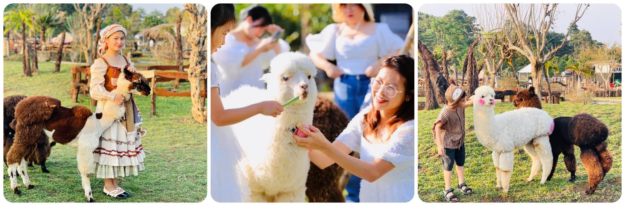 Tôi ấn tượng khi biết rằng,để lạc đà Alpaca có thể phát triển tốt tại nông trại,anh Tú và đội ngũ của mình đã không ngừng học hỏi và chăm sóc chúng với sự tận tụy đáng kinh ngạc. Từ việc chọn loại cỏ phù hợp,duy trì chế độ dinh dưỡng,đến việc tỉa lông định kỳ để giúp chúng thoải mái trong tiết trời nắng nóng của Pleiku – tất cả đều được thực hiện bằng một tình yêu thương trọn vẹn. Những chú lạc đà Alpaca với bộ lông dày trắng muốt,nâu nhạt hay đôi khi là pha trộn giữa nhiều màu sắc,không chỉ là biểu tượng của sự đáng yêu mà còn như những “đại sứ thân thiện” thu hút du khách từ khắp nơi. Đứng giữa nông trại,nhìn dòng người nô nức check-in,trò chuyện rôm rả và cùng nhau chia sẻ những tràng cười giòn tan,tôi nhận ra rằng,nông trại Alpaca không chỉ là nơi để thăm thú mà còn là nơi gắn kết những tâm hồn yêu thiên nhiên và sự bình dị.