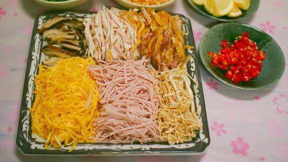 Làm từ thực phẩm còn dư ngày Tết nên bát bún thang có mỗi thứ một chút được thêm vào. Đặc biệt nguyên liệu nấu bún thang nên đồ ăn được đem ra thái chỉ hoặc xé nhỏ. Nhờ đó,bún thang rất đa sắc,đa vị.