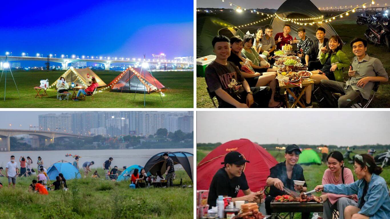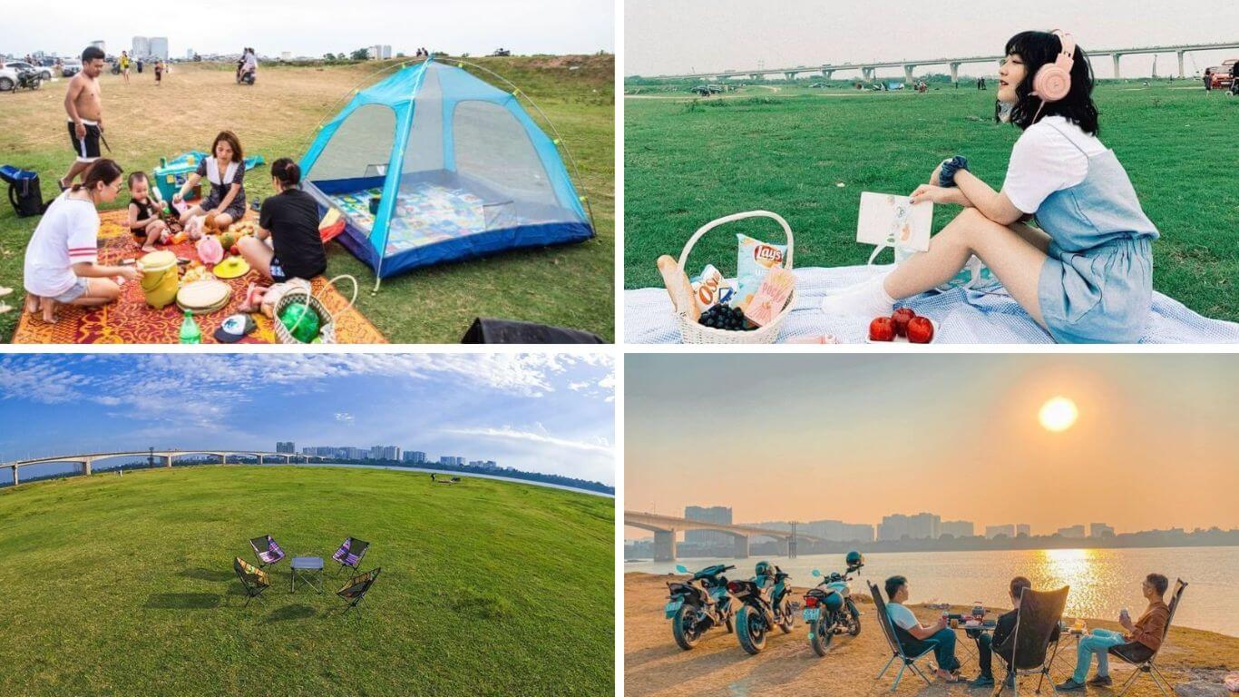 Sau một tuần làm việc căng thẳng,đôi khi chúng ta chỉ cần một không gian yên bình để xua tan đi những bộn bề. Chân cầu Vĩnh Tuy là nơi hoàn hảo cho những buổi cắm trại cuối tuần,vừa thuận tiện lại gần trung tâm thành phố. Chỉ cần một lều trại nhỏ và chút đồ ăn,bạn đã sẵn sàng tận hưởng một không gian thư giãn,thả mình vào thiên nhiên.