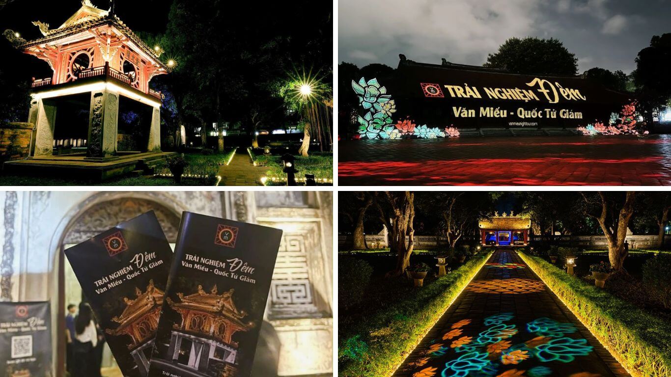 Khi bước vào khu vực,du khách sẽ ngay lập tức bị cuốn hút bởi cổng Văn Miếu tỏa sáng dưới ánh đèn lung linh. Tại đây,bạn có thể tham gia nghi lễ dâng hương,một hoạt động truyền thống nhằm tỏ lòng thành kính đối với các bậc tiền nhân. Một điểm nhấn nổi bật là Cổng Tam Quan được chiếu sáng rực rỡ,mang lại không khí trang nghiêm cho khu vực. Bên cạnh đó,du khách còn được nghe những giới thiệu tổng quan về lịch sử Văn Miếu cũng như quá trình phát triển giáo dục qua các triều đại phong kiến.