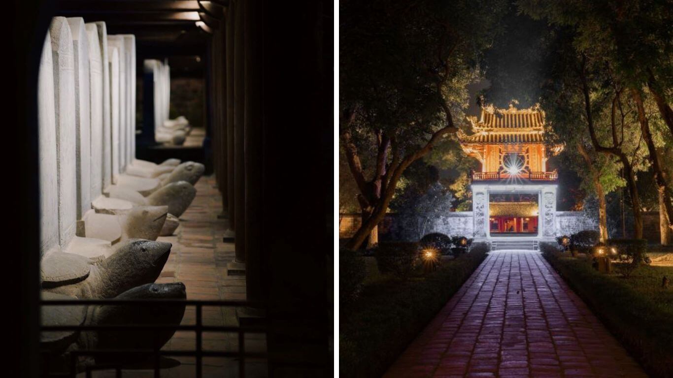 Nếu bạn yêu thích lịch sử và văn hóa,tour đêm Văn Miếu – Quốc Tử Giám sẽ là một lựa chọn lý tưởng. Vào ban đêm,khuôn viên di tích được thắp sáng lung linh,tạo nên một không gian huyền ảo và thơ mộng. Đây là dịp để tận hưởng vẻ đẹp thanh tĩnh của Văn Miếu trong một khung cảnh hoàn toàn mới lạ.