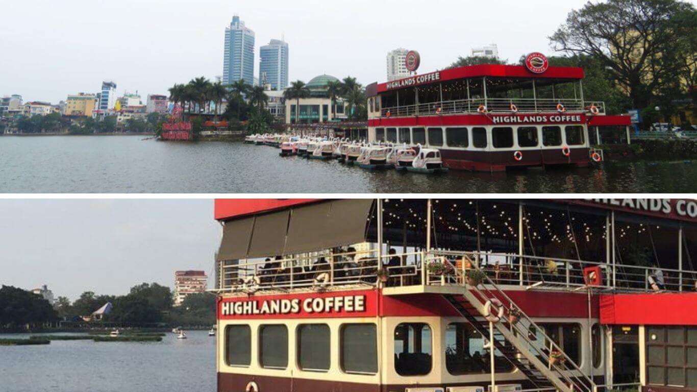 Nằm cạnh hồ Trúc Bạch,Highlands Coffee du thuyền là quán cà phê đẳng cấp tại Hà Nội với vị trí tuyệt đẹp. Thiết kế hai tầng hiện đại mang đến không gian thoáng đãng,sang trọng và dễ chịu. Từ quán,bạn có thể chiêm ngưỡng toàn cảnh Hồ Trúc Bạch và tận hưởng không khí trong lành. Buổi tối,khi hoàng hôn nhuộm vàng bầu trời,đây chính là nơi lý tưởng để thưởng thức cà phê và chụp những bức ảnh ấn tượng. Không gian đẹp và yên bình của Highlands Coffee du thuyền chắc chắn sẽ mang lại cho bạn những trải nghiệm thú vị và đáng nhớ.