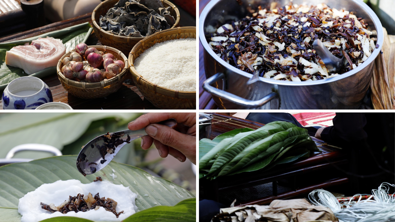 Nhân bánh là phần thể hiện tay nghề của người thợ. Mộc nhĩ được ngâm nở, băm nhỏ, xào với hành phi thơm và chút tiêu đen để dậy mùi. Có người cho thêm thịt ba chỉ thái hạt lựu để bánh thêm vị béo bùi, hài hòa với lớp bột mịn bên ngoài. Từng công đoạn đều đòi hỏi sự tỉ mẩn, chỉ cần sai một chút, bánh sẽ mất hương vị đặc trưng của Phú Nhi.