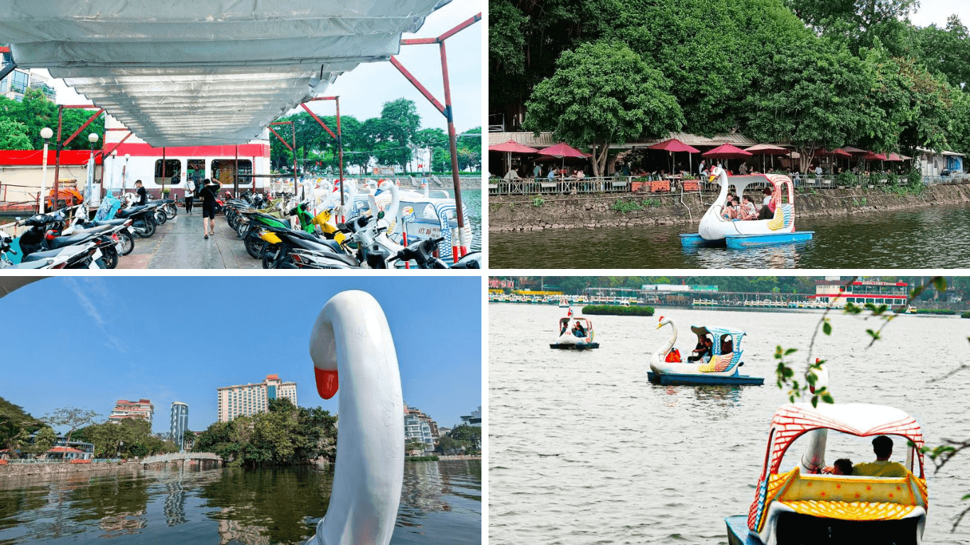 Nếu bạn muốn tận hưởng một góc nhìn khác về Hồ Tây,đạp vịt là lựa chọn tuyệt vời. Khác với việc ngồi trên bờ,bạn sẽ có cơ hội trải nghiệm cảm giác lướt nhẹ nhàng trên mặt nước,chiêm ngưỡng cảnh vật từ một tầm nhìn mới. Giá vé không quá đắt,thuyền lớn có thể phục vụ cả gia đình với mức giá hợp lý,chỉ từ 100.000 đến 200.000 VNĐ. Thậm chí,bạn có thể đến đây vào những ngày hè,khi màu hoa phượng nở rực rỡ,tạo nên một khung cảnh vô cùng đặc biệt. Những chiếc thuyền đạp vịt đã trở thành một phần không thể thiếu trong hành trình khám phá vẻ đẹp của Hồ Tây.