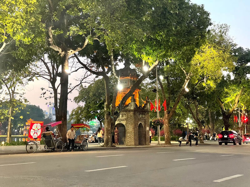Hồ Hoàn Kiếm nằm ở trung tâm thủ đô, được bao quanh bởi 3 con phố Hàng Khay – Lê Thái Tổ – Đinh Tiên Hoàng. Trước đây hồ còn có một số tên gọi khác như hồ Lục Thủy (hồ nước xanh) hay hồ Thủy Quân (bởi hồ từng là nơi để huấn luyện thủy binh chiến đấu). Đến thế kỉ thứ XV, hồ được đổi tên thành hồ Hoàn Kiếm (trả gươm), gắn liền với sự tích trả gươm báu cho rùa vàng của vua Lê Thái Tổ. Hồ Hoàn Kiếm là nơi tụ hội, điểm hẹn lý tưởng bốn mùa: Rực rỡ trong sắc đào và các lễ hội truyền thống vào mùa xuân; lồng lộng những cơn gió xua tan đi cái nóng oi bức của mùa hè; say đắm với những cành liễu rủ trong màn sương huyền ảo của mùa thu; lộng lẫy trong cơn mưa lá vàng và những giọt mưa phùn lất phất bay của mùa đông. Không chỉ là thắng cảnh đẹp mà du khách không thể bỏ qua trong danh sách những địa điểm du lịch Hà Nội mà đây còn là nơi gắn liền với truyền thống lịch sử tâm linh của thủ đô. Hồ Hoàn Kiếm có hai đảo nổi: Đảo Ngọc nằm ở phía bắc hồ, có cầu Thê Húc uốn cong bắc ngang nối ra đảo. Giữa hồ là đảo Rùa nhỏ hơn, bên trên là ngọn tháp Rùa cổ kính trăm tuổi trầm mặc giữa bốn bề long lanh sóng nước. Vào 3 ngày cuối tuần các đường phố xung quanh hồ Hoàn Kiếm sẽ trở thành phố đi bộ với nhiều hoạt động hấp dẫn như âm nhạc đường phố, các trò chơi dân gian…. thu hút rất đông du khách. Nằm trên đảo Ngọc, đền Ngọc Sơn không chỉ là di tích lịch sử, danh lam thắng cảnh nổi tiếng của Hà Nội mà còn là nơi thờ thần Văn Xương, ngôi sao chủ về văn chương khoa cử và Đức thánh Trần Hưng Đạo. Xung quanh đền là quần thể di tích kiến trúc mang nhiều giá trị lịch sử và ý nghĩa nhân văn gồm cầu Thê Húc, tháp Bút, đài Nghiên, đình Trấn Ba. Sự kết hợp giữa quần thể đền Ngọc Sơn và hồ Hoàn Kiếm đã tạo nên một tổng thể kiến trúc cổ kính hài hòa, đăng đối giữa con người và thiên nhiên. Ở cạnh Hồ Gươm là các phố cổ như Hàng Ngang, Hàng Đào, Hàng Đường,… nơi du khách có thể tham quan, khám phá cuộc sống, văn hóa và con người cũng như nét ẩm thực độc đáo của Hà Nội. Tượng đài Lý Thái Tổ được đặt tại vườn hoa Chí Linh trên đường Đinh Tiên Hoàng. Đây là công trình kiến trúc văn hóa tiêu biểu ở hồ Hoàn Kiếm nhằm tôn vinh vị vua đã có công khai sáng kinh thành Thăng Long. Nằm bên bờ hồ, tháp Hòa Phong là di tích cổ còn sót lại của chùa Báo Ân sau khi đã bị người Pháp phá hủy để lấy đất xây bưu điện. Xung quanh hồ có hằng hà sa số món đồ mà các bạn có thể mua về để làm quà cho bạn bè cũng như người thân chẳng hạn như đồ thủ công, những món quà nhỏ xinh xắn, quần áo, giày dép, các món đặc sản ở Hà Nội như bánh cốm, ô mai… Phố Hàng Ngang, Hàng Đào, Hàng Bạc, Hàng Đường, chợ Đồng Xuân… là một số địa chỉ uy tín và chất lượng để các bạn thỏa sức mua sắm. Theo kinh nghiệm của nhiều người thì các bạn nên đi mua sắm vào buổi chiều vì các cửa hàng ở đây rất kiêng việc khách hàng đến vào buổi sáng để hỏi đồ nhưng lại không mua gì.