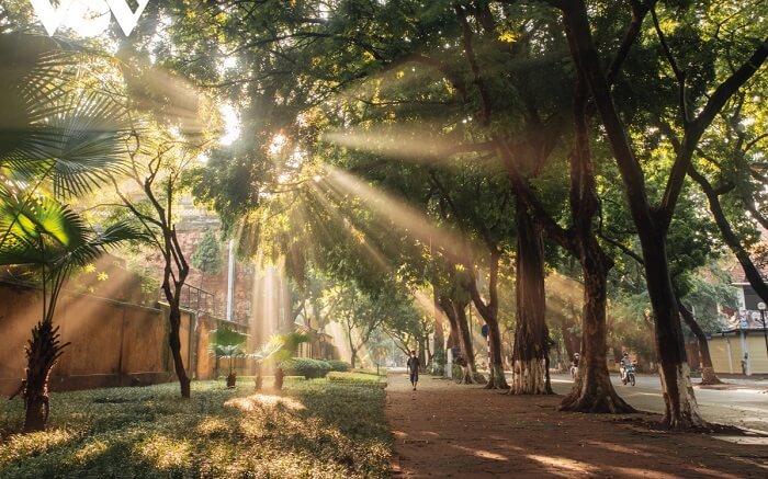 Sau đó,chúng ta hãy cùng nhau đi qua con đường được mệnh danh là đẹp nhất Hà Nôi - Phan Đình Phùng để cùng nhau đón nắng sớm đầu ngày xen qua những tán cây lúc 6 giờ 30 phút. 7 giờ 30 phút thưởng thức bữa sáng cực tuyệt với những món ăn ngon,bổ,rẻ tại quán phở Thìn bên cạnh bờ Hồ Hoàn Kiếm. Khi đã no bụng,hãy cùng nhau thử món cafe trứng tại cafe Giàng,vừa thưởng thức vừa ngắm cảnh và tán ngẫu với nhau thì còn gì tuyệt vời hơn nữa.