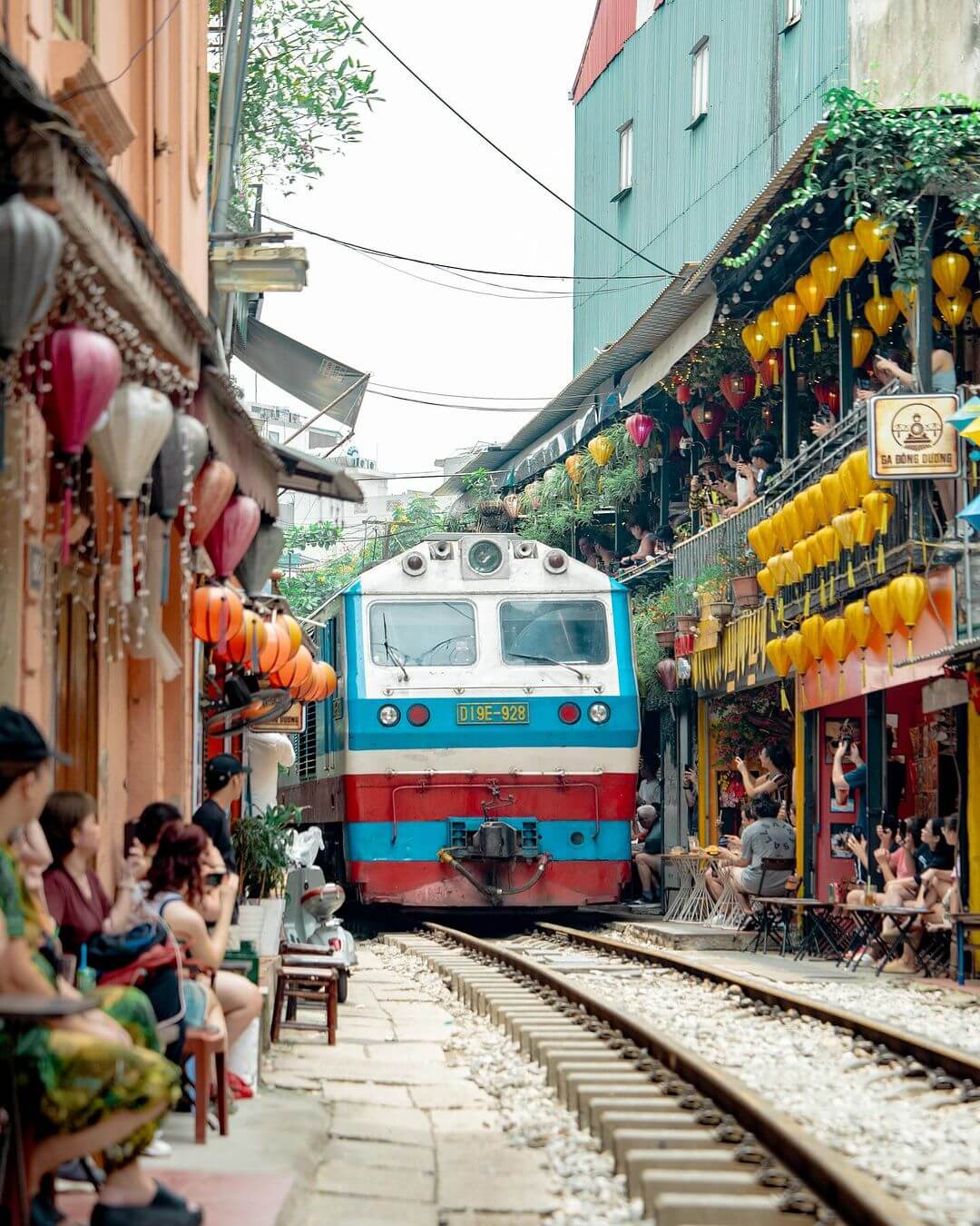 Phố đường tàu là một trong những địa điểm độc đáo nhất ở Hà Nội,nằm dọc theo phố Phùng Hưng và Trần Phú,thuộc khu vực phố cổ. Địa điểm này không chỉ thu hút bởi cảnh sắc mà còn bởi sự kết hợp đầy thú vị giữa cuộc sống thường nhật và những chuyến tàu chạy sát ngay bên cạnh. Đoàn tàu chạy qua sát những ngôi nhà nhỏ san sát bên đường ray tạo nên một cảnh tượng hiếm thấy,và cũng chính điều này đã biến Phố đường tàu trở thành một trong những điểm check-in nổi tiếng nhất với cả du khách trong và ngoài nước.
