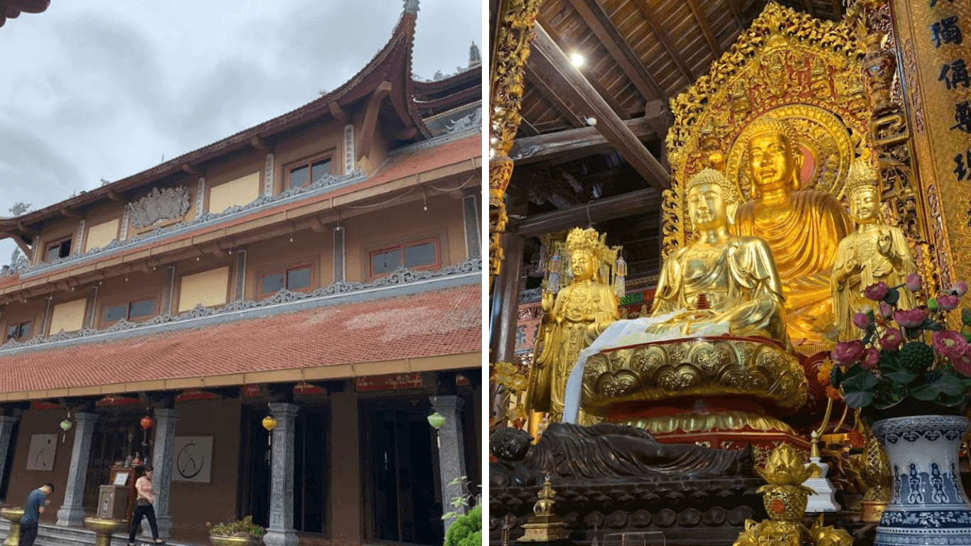 Đi qua sân nhỏ nằm phía trước điện chính,bạn sẽ đến khu vực Nhà Mẫu,nơi lưu giữ những bức tượng cổ đầy trang nghiêm,tượng trưng cho sự che chở của các Thánh Mẫu trong tín ngưỡng dân gian Việt Nam. Không gian nơi đây mang vẻ thanh bình,trầm mặc,giúp mọi người dễ dàng cảm nhận sự gần gũi và thiêng liêng. Hệ thống tượng không quá đồ sộ như ở các điện chính,nhưng mỗi bức tượng đều toát lên vẻ đẹp giản dị,cổ kính,lưu giữ dấu ấn thời gian. Một số tượng đã tồn tại hơn trăm năm,trở thành minh chứng cho sự hòa quyện giữa tín ngưỡng bản địa và văn hóa Phật giáo.