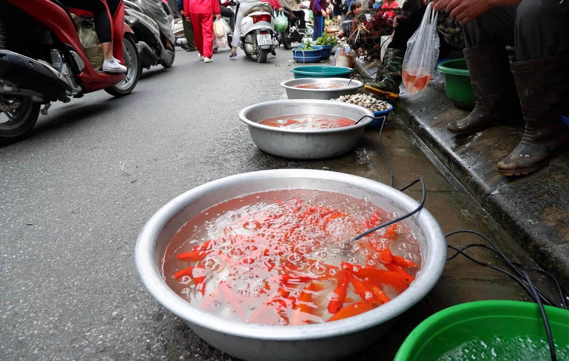 Những ngày cuối năm là khoảng thời gian khá bận rộn với mỗi người khi ai ai cũng tranh thủ thu xếp công việc,sắm sửa đồ đạc cần thiết,lên kế hoạch chi tiêu hợp lý cho dịp Tết. Như thường lệ,ngày 23 tháng Chạp là ngày tiễn ông Công ông Táo về trời bằng cá chép vàng. Theo dân gian thì ngày này các vị Táo quân sẽ quay về Thiên đình để báo cáo với Ngọc Hoàng những việc xảy ra trong một năm qua dưới trần gian của mỗi gia đình. Chính vì vậy,23 Tháng Chạp năm nào thì mọi nhà đều chuẩn bị một mâm cỗ cúng thành tâm và không quên mua thêm cá chép vàng để thả xuống sông sau khi việc cúng bái hoàn tất. Đi dọc theo các khu chợ ở Hải Phòng ngày 23 Tết bạn sẽ phải trầm trồ bởi những bể cá chép vàng hoặc những chiếc xe đi bán rong cá chép. Thuận mua vừa bán,cá chép vàng vào ngày này được bán rất chạy,hầu như ai ai rời khỏi chợ cũng đã lựa cho mình vài chú cá ưng ý. Cá chép sẽ là con vật mang lại hy vọng và may mắn cho gia chủ,“cá chép hóa rồng” cũng là biểu tượng cho những hy vọng về một năm mới bình an,nhiều may mắn đến với mọi nhà.