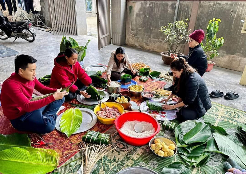 Cả nhà quây quần gói bánh chưng (ảnh: sưu tầm)
