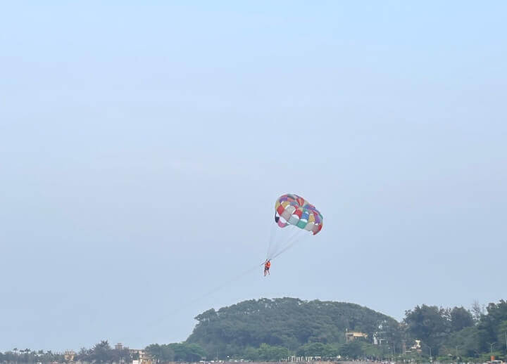 Du khách tham gia trò chơi dù lượn (ảnh: tác giả)