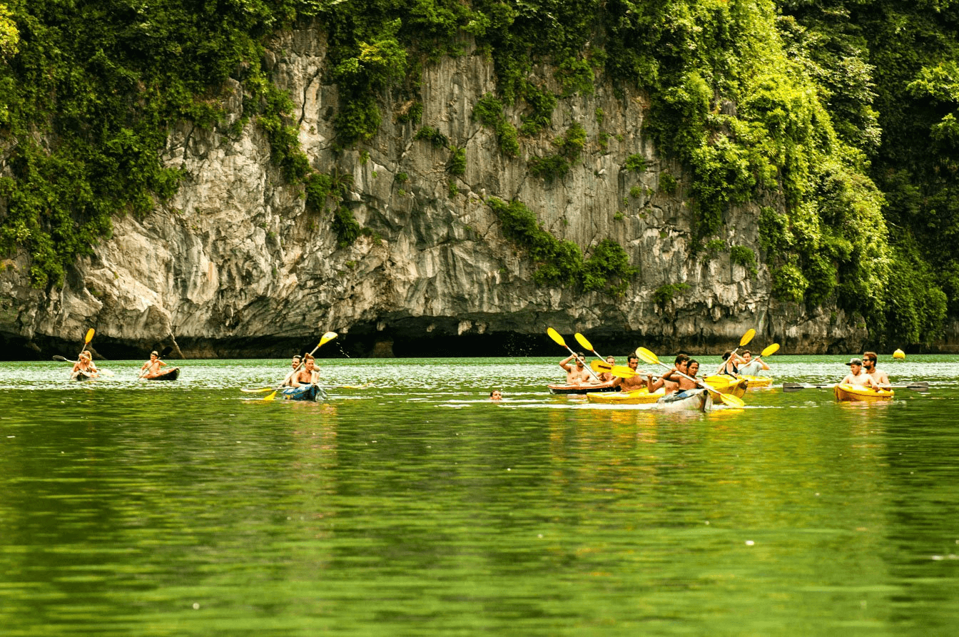 Một trong những hoạt động không thể bỏ qua tại hang Sáng Tối là chèo thuyền kayak. Với chiều cao của hang không cho phép tàu lớn đi qua,du khách sẽ được thưởng thức cảnh quan hoang sơ từ trên thuyền nhỏ. Đây cũng là cơ hội để khám phá các hệ sinh thái độc đáo dưới nước và trên trần hang.