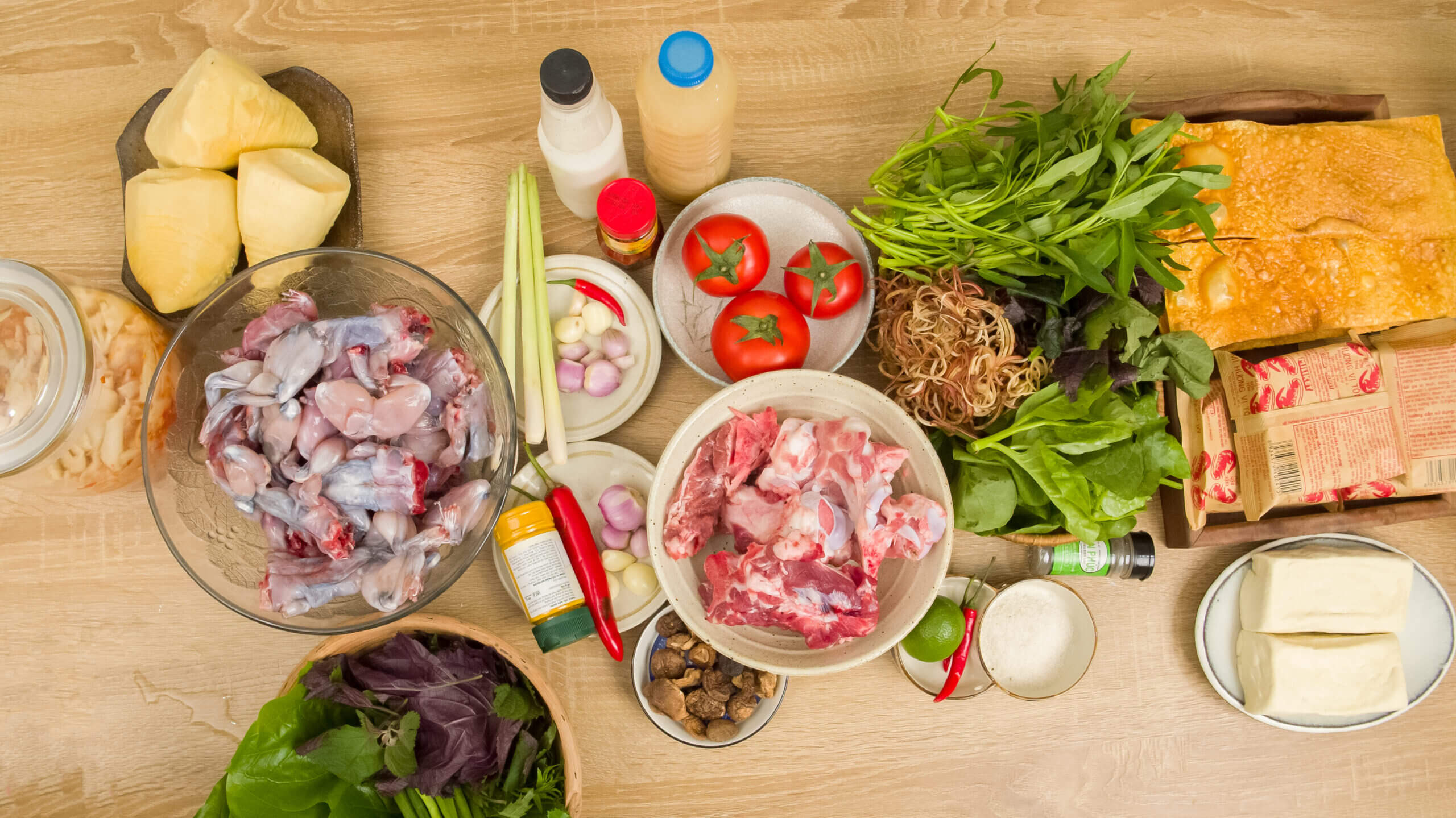 Những nguyên liệu chính của món lẩu ếch (ảnh: sưu tầm)