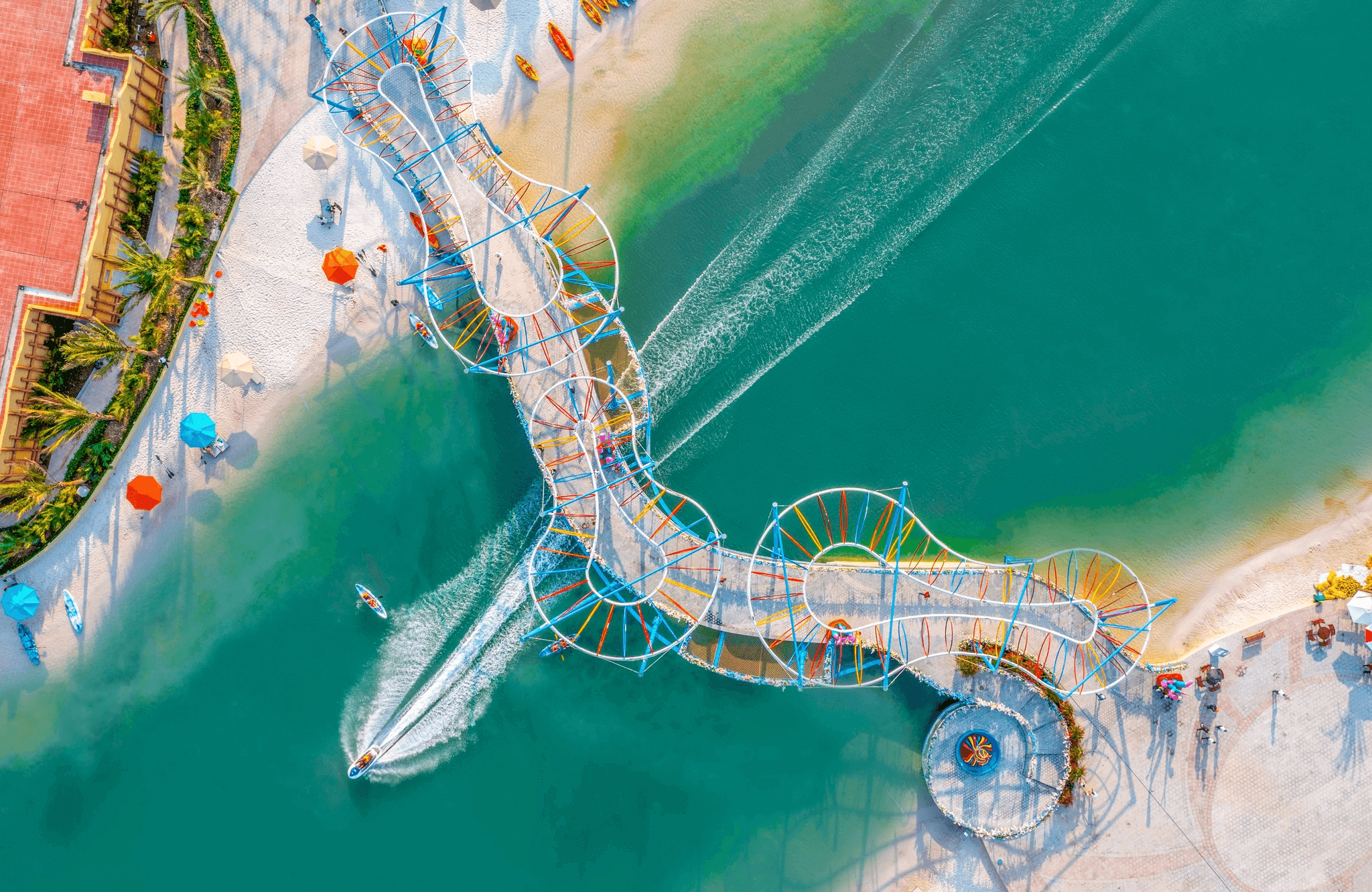 Không chỉ là nơi vui chơi và thư giãn,Royal Wave Park còn là một thiên đường check-in với những công trình kiến trúc độc đáo. Cây cầu Coastal Bridge lấy cảm hứng từ hình ảnh cánh sò nhả ngọc,hay cây cầu Waverly Bridge mô phỏng những đợt sóng biển đều là những điểm chụp ảnh lý tưởng. Bên cạnh đó,không gian nhà hàng nằm trên biển nhân tạo cũng mang đến cảm giác như bạn đang ngồi tại một bãi biển nổi tiếng.