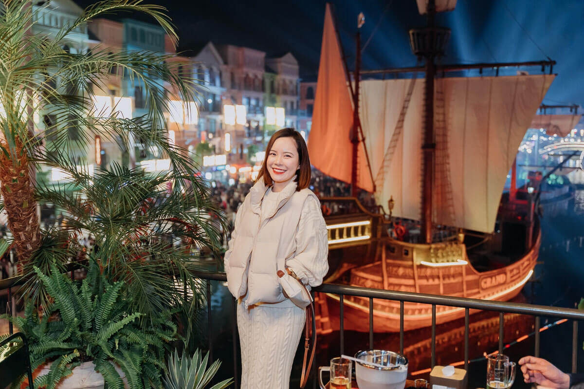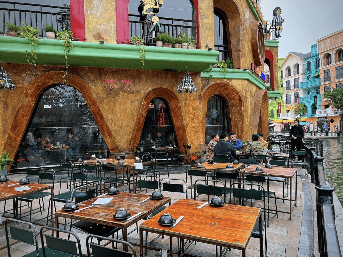 Tọa lạc ngay vị trí trung tâm của phân khu Venice,quán nhậu Tự Do nằm sát quảng trường Grande và sở hữu không gian 4 tầng rộng rãi với diện tích lên đến 1200m2. Từ đây,bạn có thể ngắm nhìn toàn cảnh dòng sông Venice nên thơ,đặc biệt là vào buổi tối khi ánh đèn phản chiếu tạo nên một khung cảnh lung linh huyền ảo. Mỗi tầng của quán đều có “view triệu đô”,với nhiều góc nhìn từ ban công cực chill hướng thẳng ra con sông Venice. Không gian thoáng mát và rộng rãi này lý tưởng cho các buổi liên hoan công ty,tụ tập bạn bè hoặc sum họp gia đình.