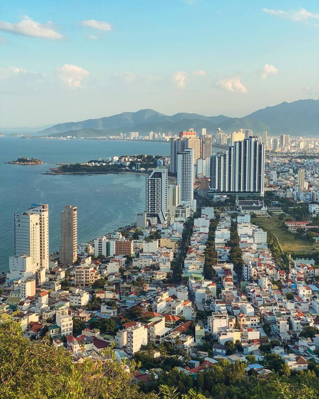 Sau khoảng hơn một giờ leo núi,mình đã đến được đỉnh Cô Tiên. Cảm giác đứng trên đỉnh núi,ngắm nhìn toàn cảnh thành phố Nha Trang dưới chân thật sự khiến mình cảm thấy phấn khích. Từ đây,mình có thể nhìn thấy bãi biển xanh ngắt,những ngôi nhà trắng xóa và cả những con đường uốn lượn quanh co.