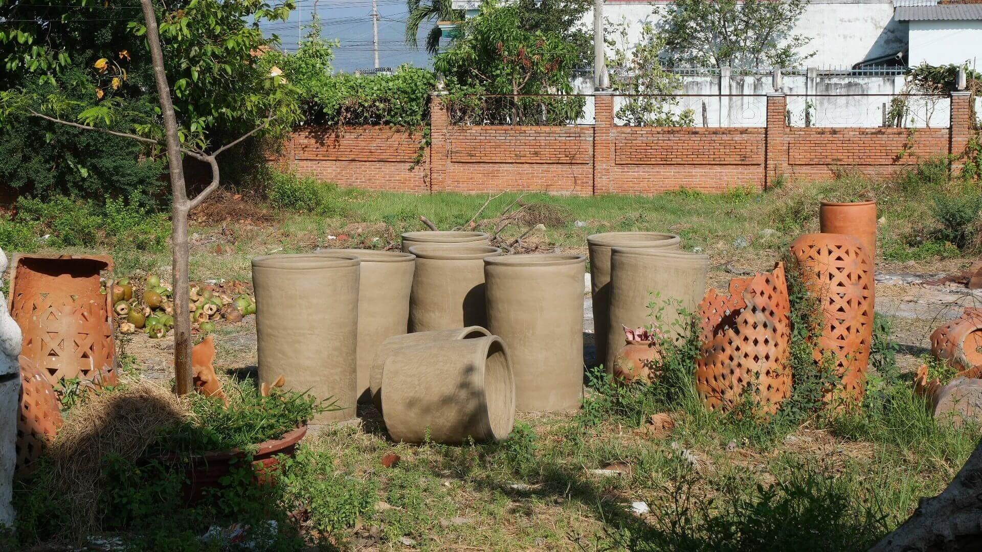 Gốm được phơi dưới cái nắng đổ lửa. Nguồn ảnh: Hương Kha