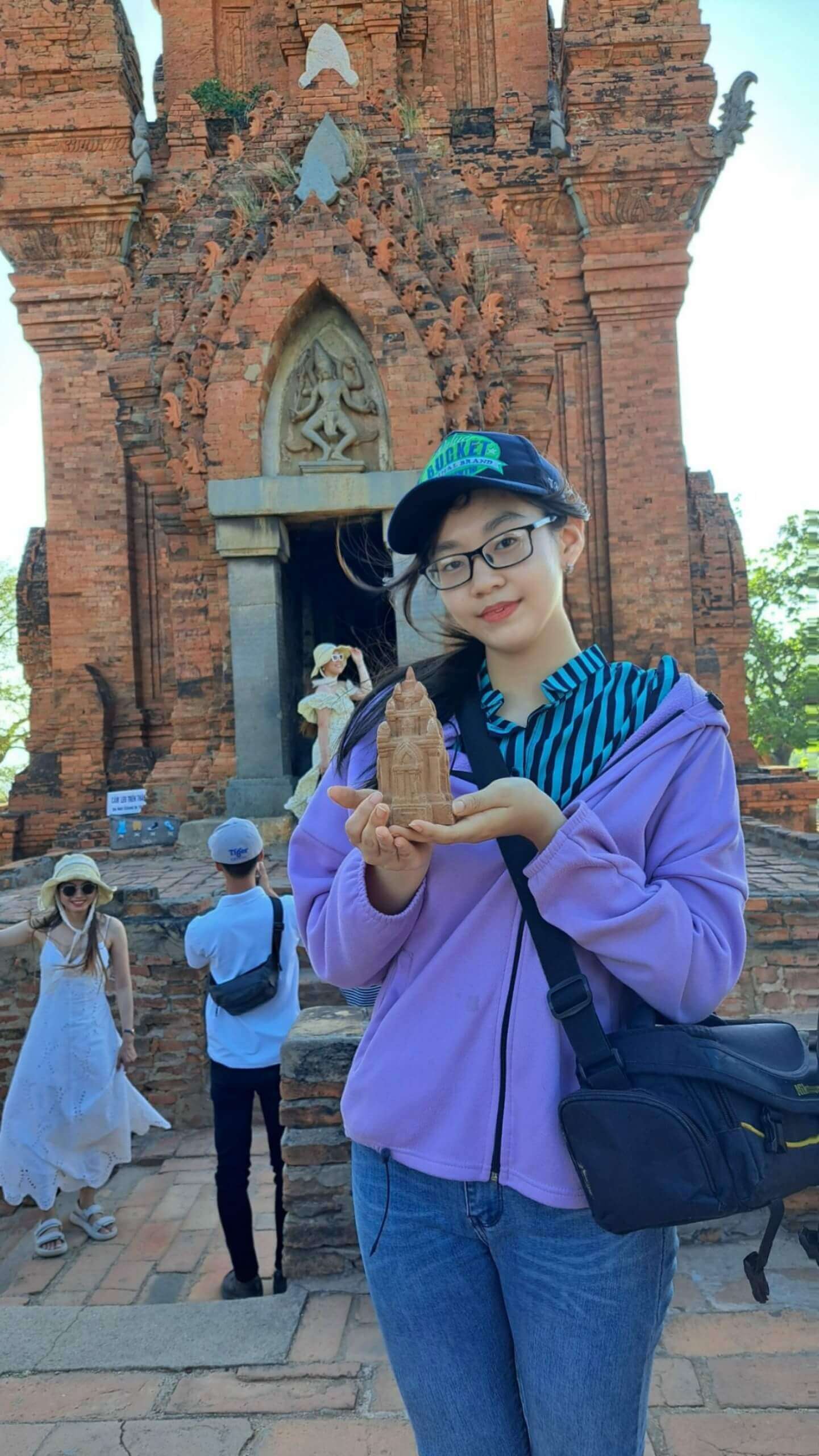 Cầm trên tay tượng mô phỏng tòa tháp Chăm được trạm trổ tinh xảo,tôi như thấy một nền văn hóa đặc sắc và sống động. Nguồn ảnh: Hương Kha