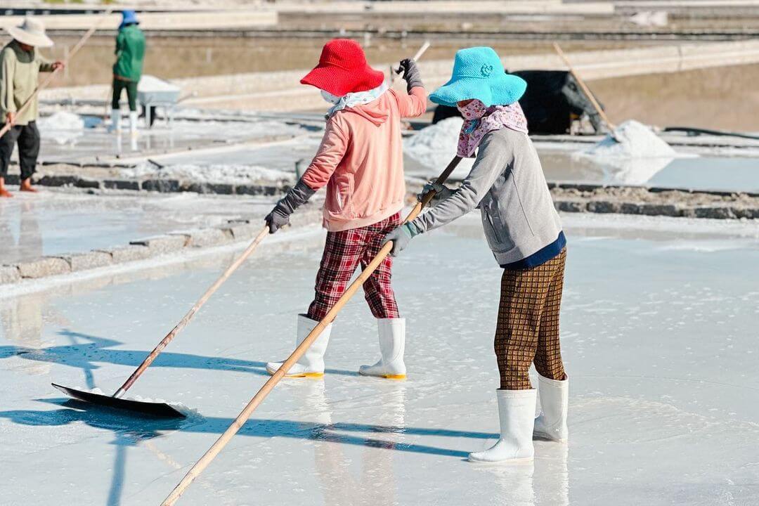 Không chỉ thu hoạch muối,mình còn được tìm hiểu về quy trình sản xuất muối từ lúc lấy nước biển đến khi thu hoạch. Những câu chuyện về nghề làm muối được các cô chú chia sẻ chân thành,giúp mình hiểu rõ hơn về công việc này. Mỗi giai đoạn,từ việc dẫn nước biển vào ruộng,để nước bốc hơi và kết tinh thành muối,đều đòi hỏi sự kiên nhẫn và kỹ thuật.