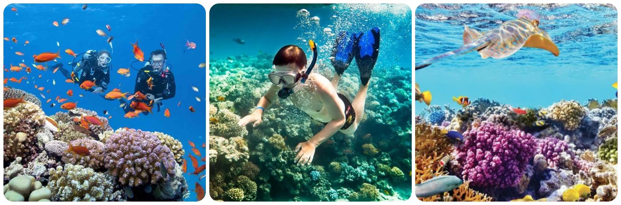 Ngay khi đến đảo,tôi đã bị thu hút bởi những hoạt động thú vị mà nơi đây mang lại. Một trong những trải nghiệm nổi bật chính là lặn biển ngắm san hô bằng bình oxy. Đây thực sự là cơ hội hiếm có để tôi được tận mắt chiêm ngưỡng thế giới kỳ bí dưới đáy đại dương – nơi các rạn san hô rực rỡ sắc màu hòa quyện với những đàn cá bơi lội tung tăng. Điều đặc biệt là ngay cả khi không biết bơi,bạn vẫn có thể tham gia lặn biển bởi các hướng dẫn viên luôn sẵn sàng hỗ trợ và hướng dẫn cách lặn an toàn chỉ trong vài phút. Nếu không muốn lặn,bạn có thể lựa chọn ngắm san hô qua tàu đáy kính hoặc ngồi thuyền thúng được chèo bởi các ngư dân bản địa.