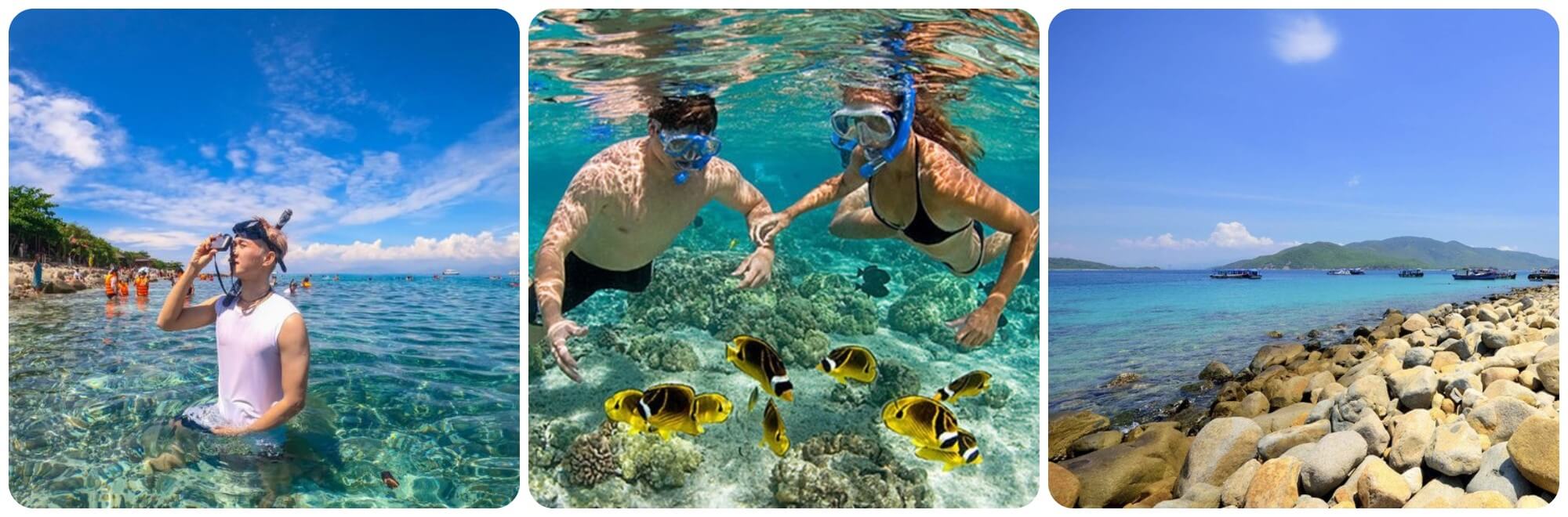 Thời gian lý tưởng nhất để ghé thăm Hòn Mun là từ tháng 7 đến tháng 9,khi thời tiết Nha Trang đẹp như tranh vẽ,du khách có thể tận hưởng trọn vẹn kỳ nghỉ tại đây và kết hợp với việc khám phá thành phố biển Nha Trang. Đặt chân đến đảo Hòn Mun,tôi không khỏi ngỡ ngàng trước khung cảnh thiên nhiên kỳ vĩ và bầu không khí trong lành,yên tĩnh,khác xa sự náo nhiệt của phố thị.