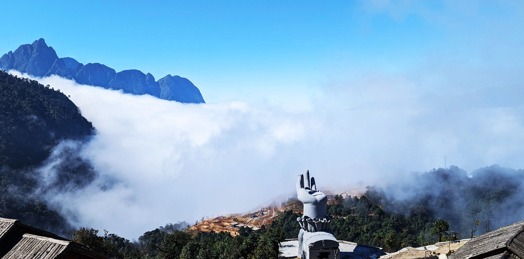 Ở độ cao hơn 2.000 mét so với mực nước biển,đứng trên đỉnh đèo Hoàng Liên Sơn và phóng tầm mắt ra xa về phía chân trời,du khách có thể chiêm ngưỡng sự bao la của bầu trời Tây Bắc,những ngọn núi hùng vĩ và biển mây trắng trải dài bất tận. Vẻ đẹp siêu thực của cảnh quan chắc chắn sẽ khuấy động cảm xúc.