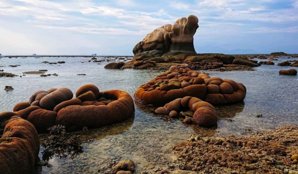 Bãi biển ở đảo Hòn Cau trong vắt cùng với những đá tảng rất nổi bật (Ảnh sưu tầm)