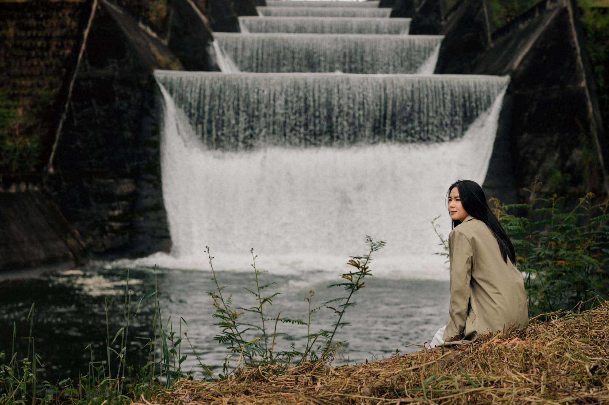 Nơi đến tiếp theo không được bỏ qua cho các chị em ưa thích chiếc view mát mẻ tại nơi này: Đập tràn Hồ Tuyền Lâm,từng hàng nước chảy miết trắng xóa như mái tóc dài lấp lánh của công chúa bóng mây. Khung cảnh trữ tình nên thơ có một chút u sầu,nhưng nếu muốn nơi đây trở nên sinh động hơn có thể chờ nắng vàng chiếu lên. Khi ấy sẽ có một bức ảnh đầy mát mẻ đúng nghĩa của chuyến đi nghỉ dưỡng.