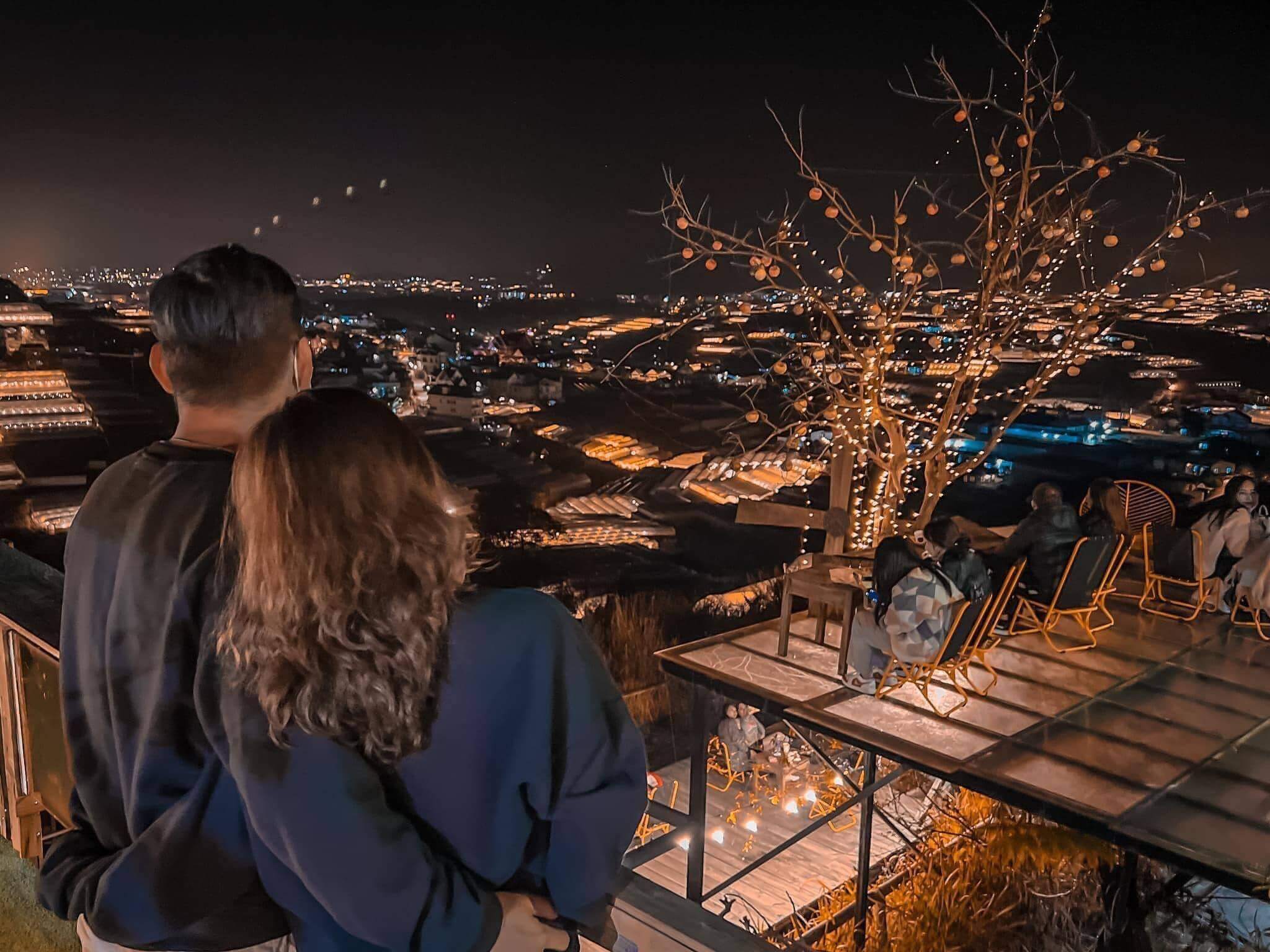 Khi màn đêm buông xuống,ánh sáng ảo diệu và lung linh từ Làng Vũ Thị càng làm cho nơi đây trở nên tách biệt khỏi sự ồn ào,náo nhiệt của phố thị. Đứng trên cầu,tôi có thể ngắm nhìn toàn cảnh Đà Lạt với thung lũng ngập tràn ánh sáng lung linh phát ra từ những ngôi nhà kính xa xa. Không còn tiếng còi xe ồn ào,không còn bóng dáng của những tòa nhà cao tầng san sát,chỉ có tôi và mây trời Đà Lạt,cùng màn đêm an tĩnh,khiến lòng tôi bỗng chốc trở nên an yên lạ thường.
