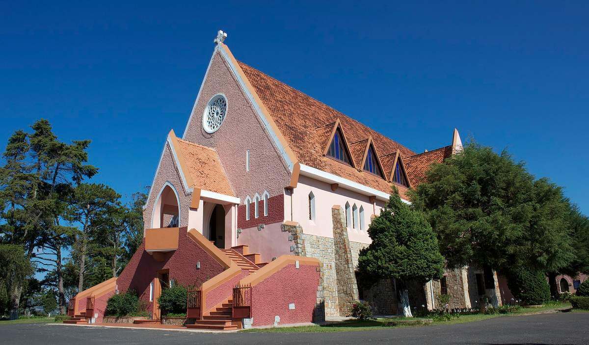 Nhà thờ Domaine De Marie,một công trình kiến trúc độc đáo giữa lòng thành phố Đà Lạt,không chỉ thu hút du khách bởi vẻ đẹp cổ kính mà còn bởi sự kết hợp tinh tế giữa phong cách kiến trúc châu Âu và nét truyền thống Việt Nam. Được xây dựng từ những năm 1940,nhà thờ này đã trở thành một trong những điểm đến không thể bỏ qua khi đến thăm Đà Lạt.