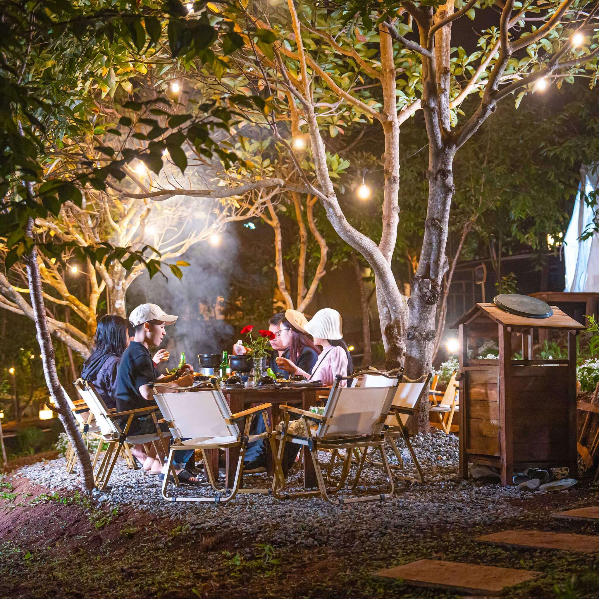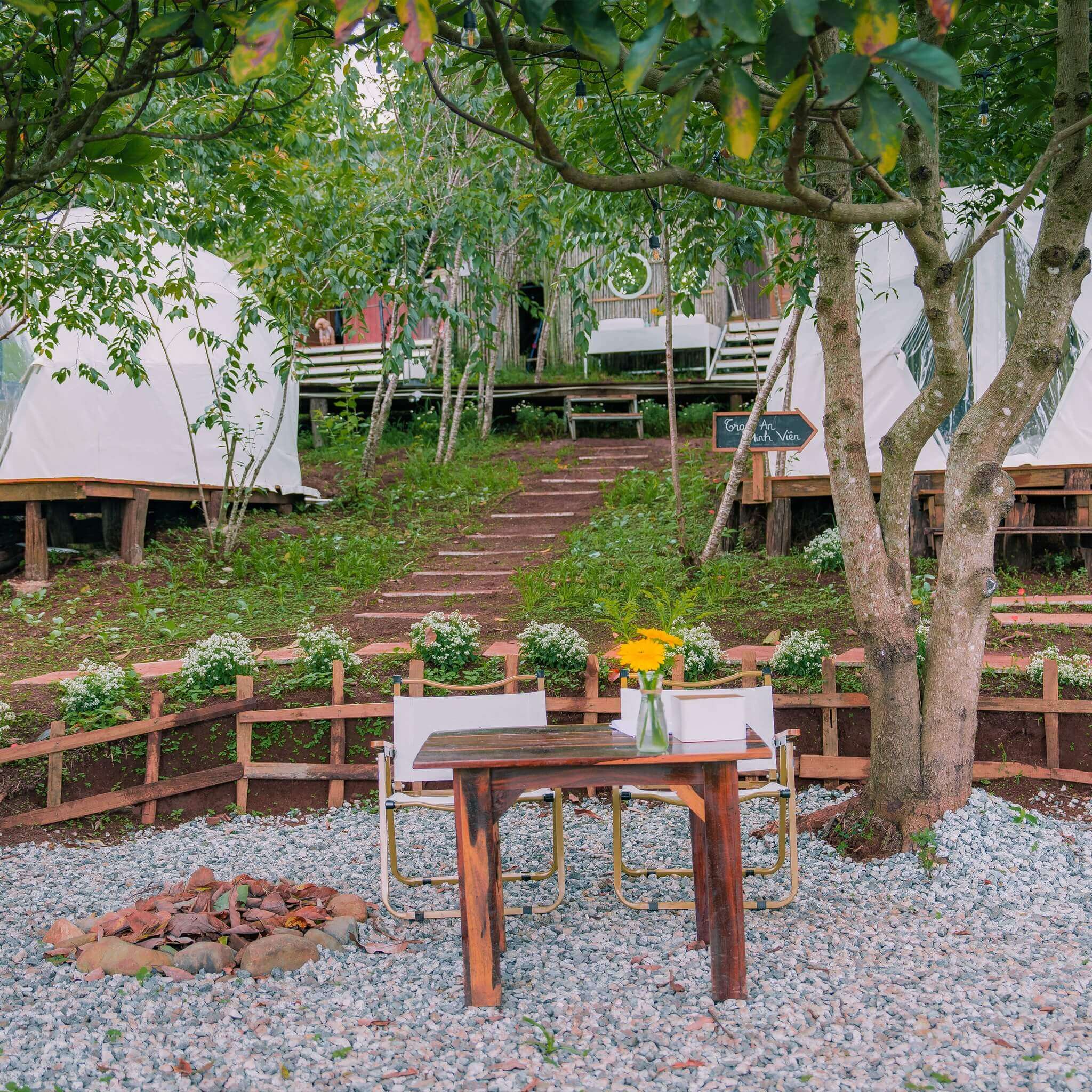 Trạm Mây không chỉ là nơi nghỉ dưỡng,mà còn là không gian "chữa lành" lý tưởng. Góc uống trà nhỏ xinh ngay trước khu lều là nơi bạn có thể ngồi thưởng trà,đọc sách và trò chuyện. Không gian mát rượi với cây xanh xung quanh và buổi tối lên đèn,đốt lửa trại kèm đàn guitar tạo nên không khí cực chill.