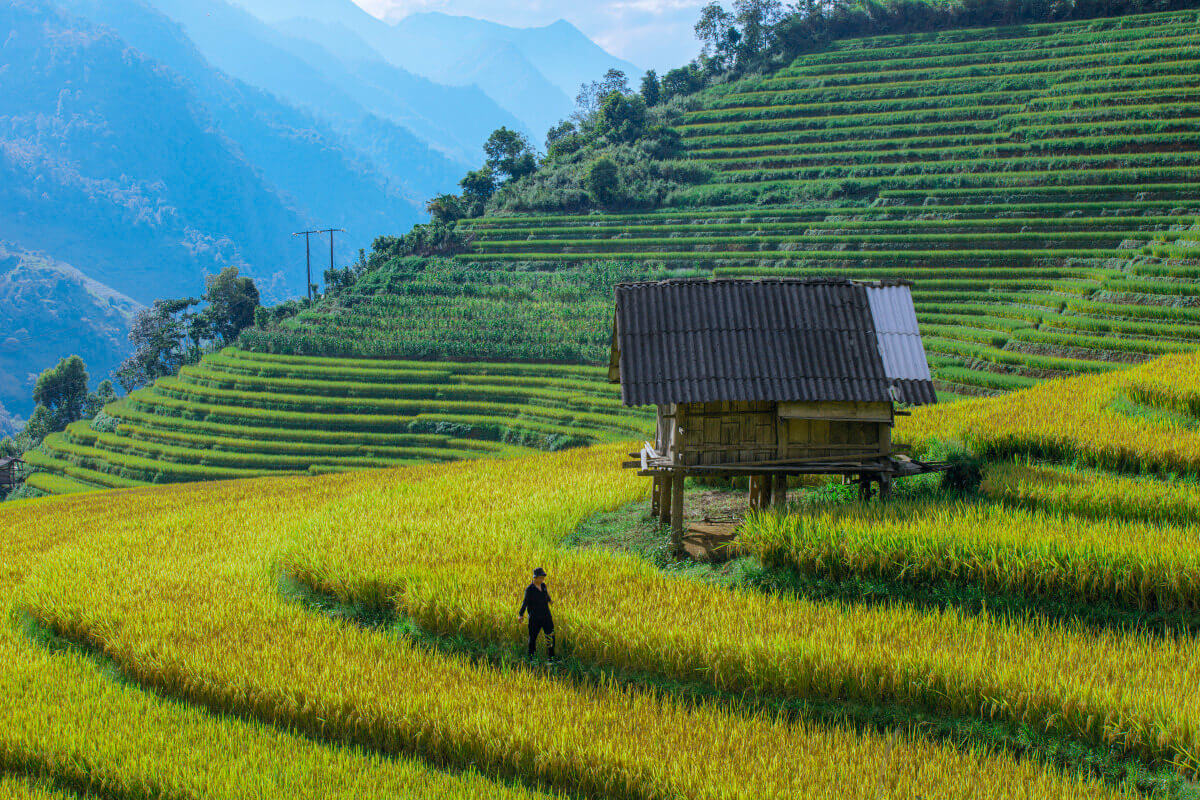 Từ tháng 9 đến tháng 10,cả bản làng sẽ được bao phủ bởi sắc màu vàng ươm của những thềm ruộng bậc thang chín vàng. Đặc biệt,khi thời tiết lúc này vẫn đang có nắng nên nhiệt độ sẽ ấm áp,dễ chịu,thuận tiện cho du khách thăm quan,khám phá Lao Chải.