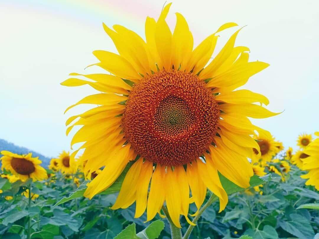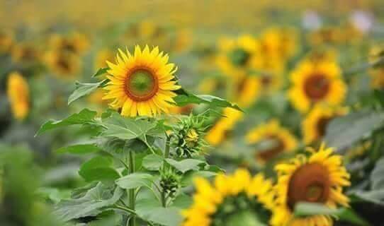 Đồi hoa hướng dương mang vẻ đẹp tươi sáng và rực rỡ. Những bông hoa hướng dương cao cao,vuốt theo ánh mặt trời,vẫy chào những du khách tới thăm. Mỗi cánh hoa như một mặt trời thu nhỏ,tỏa sáng rạng rỡ trên nền xanh tươi của cây cỏ. Đứng giữa đồi hoa,bạn có thể cảm nhận được sự ấm áp,tươi vui và lạc quan về cuộc sống. Đây thực sự là một khung cảnh tuyệt vời để thư giãn,trầm ngâm và tìm lại sự bình yên trong tâm hồn đừng quên cầm điện thoại lên mà chụp một bức hình thật đẹp nhé.