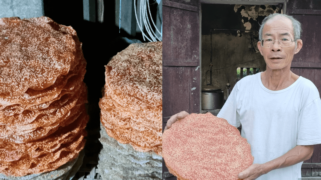Trên mỗi chiếc bánh đều được rắc vừng đều tay,lớp vừng mỏng vừa đủ để không át vị gạo. Sau khi tráng xong,bánh được mang đi phơi ngoài trời nắng lớn. Để bánh khô giòn đúng ý,người làm phải xoay bánh theo hướng nắng,canh thời gian hợp lý để không bị cong mép hay vỡ giữa. Những thao tác nhỏ ấy là kết quả của nhiều năm kinh nghiệm tích lũy,không thể học qua vài ngày.