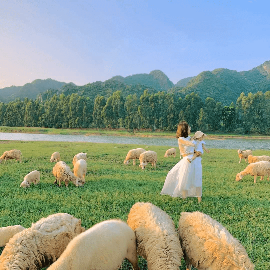 Đồng cừu Gia Hưng Ninh Bình mang trong mình vẻ đẹp yên bình,lãng mạn với phong cảnh đồng quê mộc mạc. Khung cảnh nơi đây như một bức tranh thủy mặc,với dòng sông trong vắt,hàng thông soi bóng xuống mặt nước,và những chú cừu trắng muốt nhởn nhơ gặm cỏ. Tất cả tạo nên một bức tranh thiên nhiên tuyệt đẹp,khác biệt hoàn toàn với sự ồn ào,náo nhiệt của thành phố.