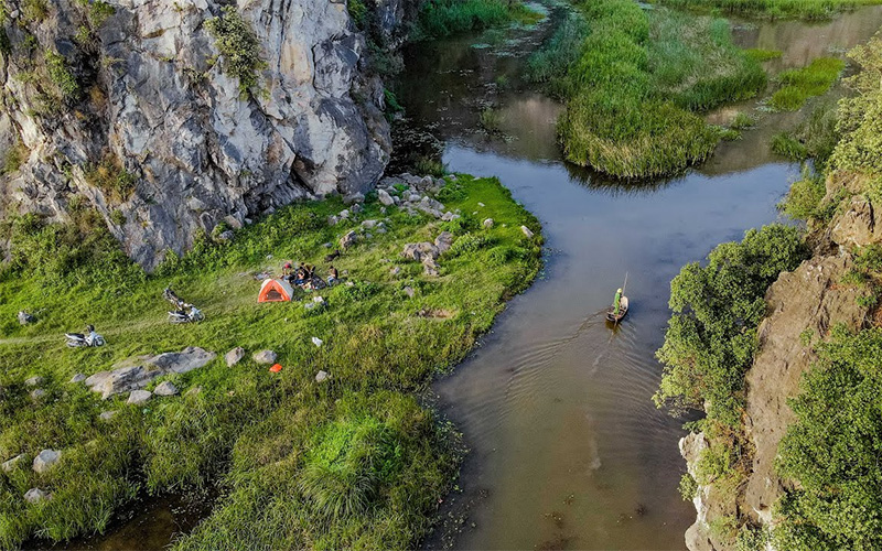 Sáng sớm là thời điểm lý tưởng để tận hưởng bình minh và không khí mát lành,thoát khỏi mọi ồn ào. Nếu muốn,bạn có thể gửi xe tại Tràng An và thuê thuyền để ngắm cảnh từ trên mặt nước. Dòng sông nhỏ,những hang động đá vôi và cây xanh xen lẫn sẽ đem đến cảm giác như đang lạc vào một thế giới cổ tích. Đây là sự kết hợp hoàn hảo giữa cắm trại và hành trình khám phá phong cảnh Tràng An giản dị nhưng đầy chất thơ.