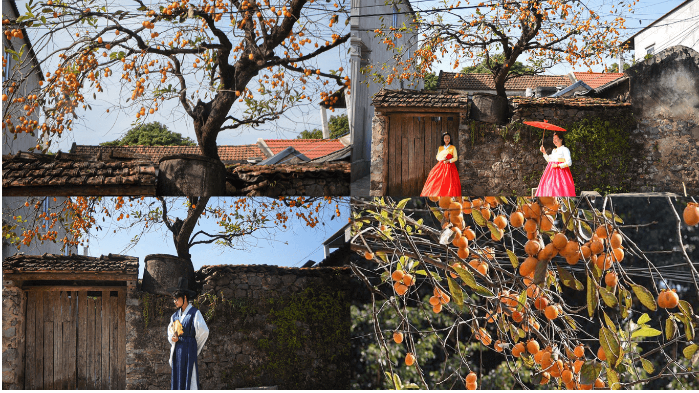 Khu vực quanh cây hồng cổ còn được điểm xuyết bởi Nhà bà Xiêm,một công trình kiến trúc cổ kính với tường nhà rêu phong và cổng gỗ giản dị. Sự kết hợp giữa cây hồng,chum nước truyền thống và các cấu trúc cổ tạo nên không gian như bước vào một thời đã qua. Nhiều người so sánh khung cảnh này với những cảnh quay trong phim cổ trang,đặc biệt khi mặc trang phục Hanbok,làm tăng thêm phần hấp dẫn cho du khách. Những bức ảnh được chụp tại đây thường mang phong cách vintage,thu hút sự chú ý của nhiều người yêu thích nhiếp ảnh.