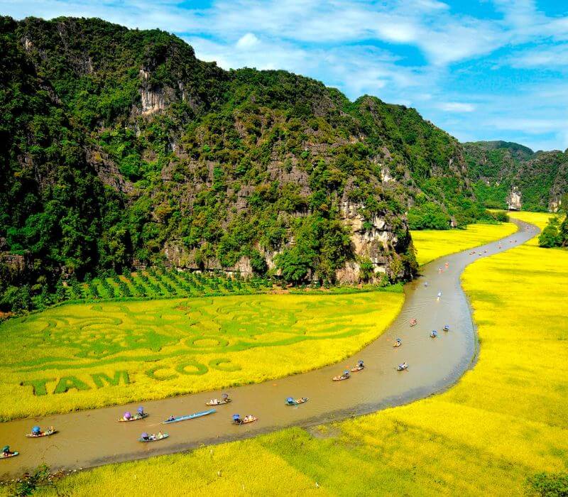 Tam Cốc – Bích Động nằm cách Tràng An không xa,nổi tiếng với cảnh sắc hữu tình của những thung lũng và núi non. Du khách có thể tham gia tour thuyền dọc theo sông Ngô Đồng,ngắm cảnh đồng lúa xanh mướt và các hang động đá vôi tuyệt đẹp. Ngoài ra,Tam Cốc – Bích Động còn có nhiều điểm dừng chân lý tưởng để bạn chụp hình và thưởng thức không khí trong lành của thiên nhiên.