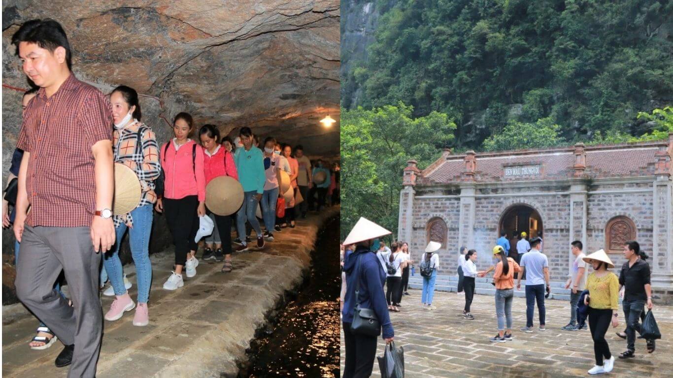 Khám phá Thung Vối Tràng An bằng đường bộ là một trải nghiệm đáng thử. Lối đi xuyên qua lòng núi đã được lát đá bằng phẳng,sạch sẽ,giúp du khách di chuyển dễ dàng. Với trần cao gần 2 mét và ánh sáng đèn vừa đủ,con đường tạo cảm giác như đang bước vào một hang động huyền bí. Khi đi bộ,bạn có thể cảm nhận không khí mát mẻ và lắng nghe âm thanh tự nhiên của rừng núi xung quanh. Đây là cơ hội để tiếp xúc gần hơn với thiên nhiên và tận hưởng vẻ đẹp hoang sơ của vùng đất này.