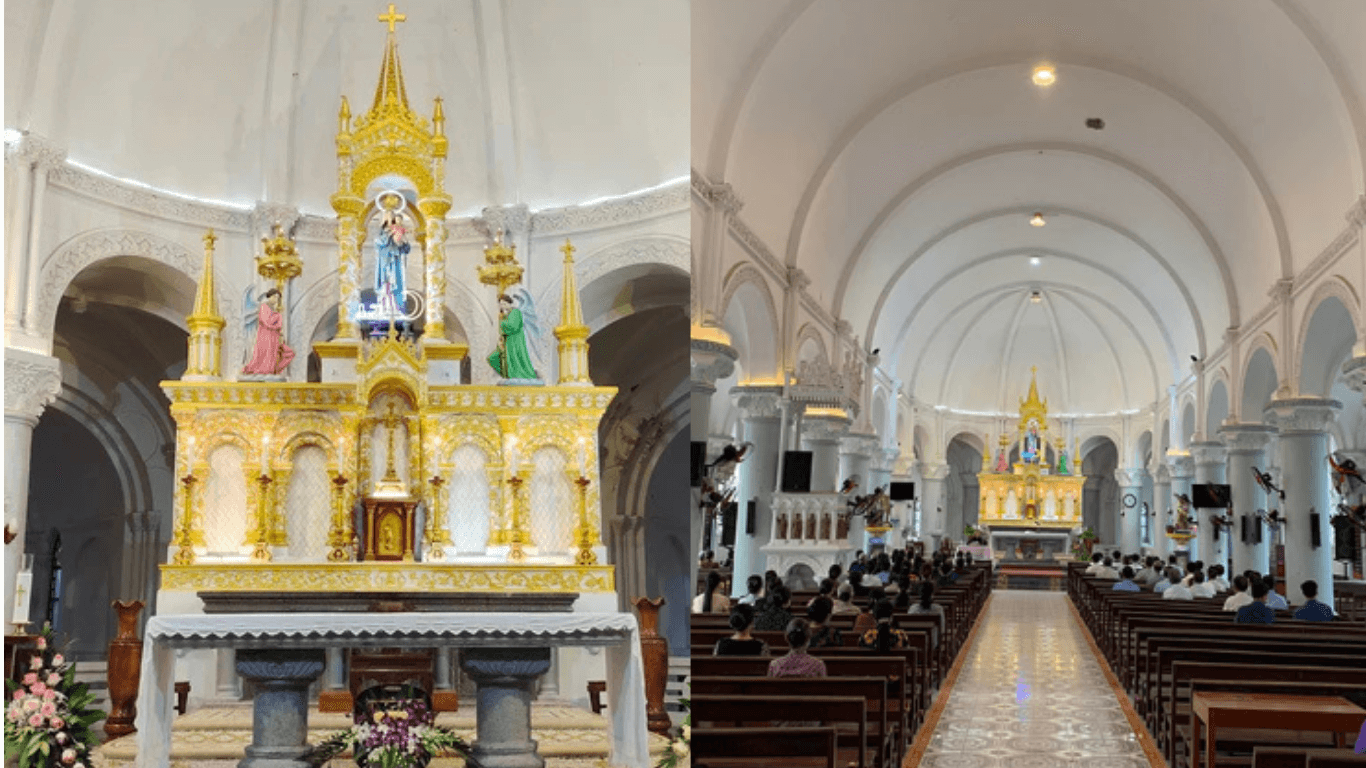 Ngoài ra,những chi tiết chạm khắc trên tường và cột trụ đều được thực hiện một cách tỉ mỉ,thể hiện sự khéo léo và tinh tế. Từng họa tiết nhỏ không chỉ mang tính thẩm mỹ mà còn chứa đựng những biểu tượng tôn giáo và văn hóa sâu sắc. Sự hòa quyện giữa phong cách Gothic và yếu tố địa phương tạo nên một vẻ đẹp vừa trang nghiêm,vừa gần gũi.