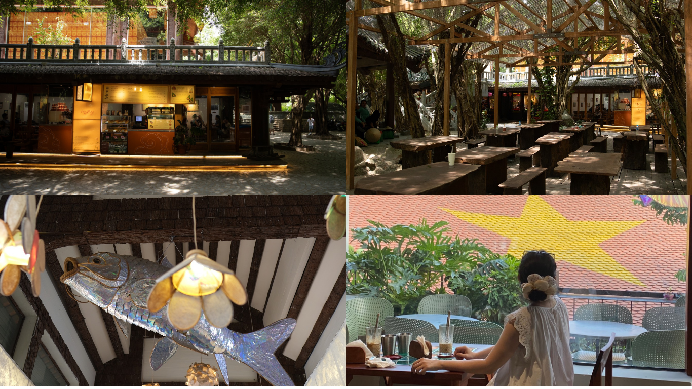 Không gian quán được thiết kế rất "sống ảo" với nhiều góc chụp đẹp mắt,phù hợp để lưu giữ kỷ niệm hoặc tạo ra những bức ảnh nghệ thuật. Các mảng tường được trang trí bằng tranh vẽ tay và đồ thủ công tinh tế giúp bức ảnh thêm phần cuốn hút. Ánh sáng tự nhiên từ giếng trời là điểm cộng lớn,tạo nên hiệu ứng lung linh và tự nhiên cho hình ảnh. Tớ thường thấy nhiều bạn trẻ,khách du lịch đến đây để chụp ảnh,khiến không khí quán thêm phần sinh động.