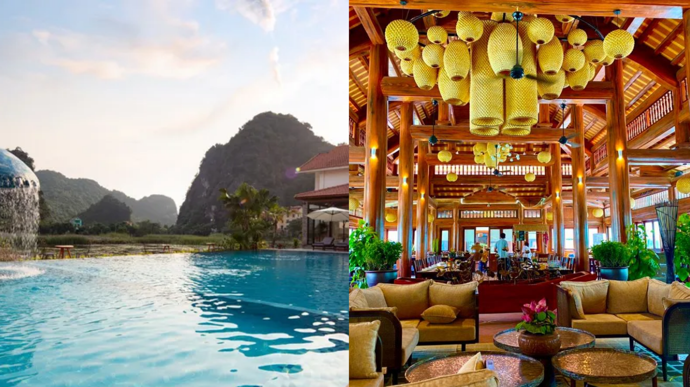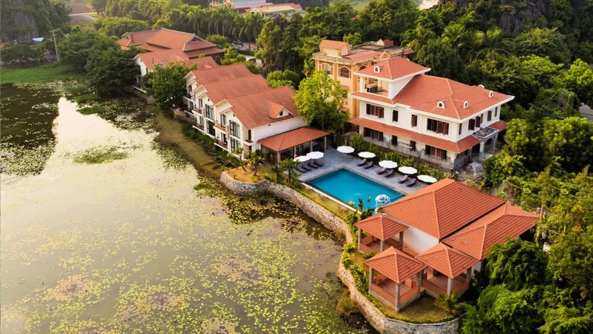 Điều đầu tiên tớ muốn nhấn mạnh chính là vị trí rất đắc địa của resort. Địa chỉ cụ thể nằm tại Đam Khê Trong,Hoa Lư,Ninh Bình,một khu vực vẫn giữ được nét hoang sơ. Nơi này không nằm ngay trung tâm ồn ào,náo nhiệt mà nép mình duyên dáng giữa những dãy núi đá vôi trập trùng. Chính sự tách biệt vừa phải này tạo nên một không gian nghỉ dưỡng lý tưởng cho những ai tìm kiếm sự tĩnh lặng.