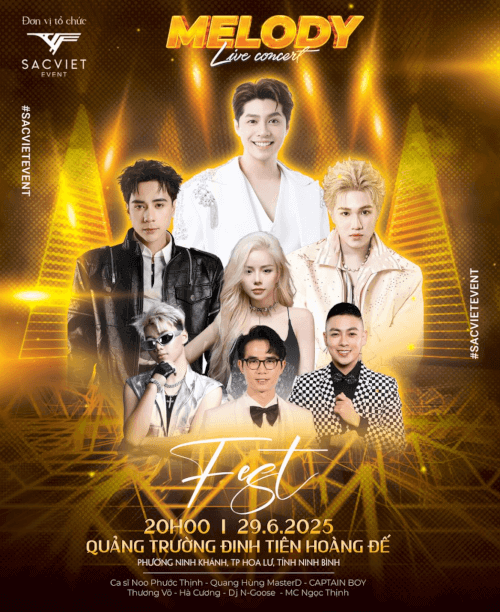 Ninh Bình – vùng đất nổi tiếng với vẻ đẹp huyền bí của thiên nhiên và những giá trị văn hóa lâu đời,sẽ trở thành tâm điểm của một sự kiện âm nhạc không thể bỏ lỡ vào mùa hè này. Đêm nhạc Melody Live Concert Fest 2025 sẽ thắp sáng bầu không khí tại thành phố Hoa Lư,hứa hẹn mang đến những khoảnh khắc âm nhạc đầy cảm xúc và sôi động.