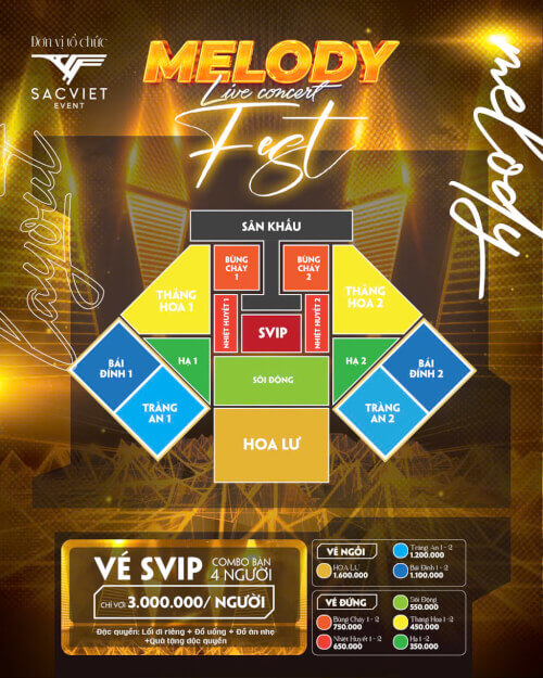 Vé tham gia sự kiện Melody Live Concert Fest 2025 hiện đã có sẵn trên các nền tảng bán vé trực tuyến. Khán giả có thể dễ dàng mua vé qua các kênh phân phối chính thức của chương trình. Để có được những chỗ ngồi tốt nhất,khuyến khích bạn nên đặt vé trước càng sớm càng tốt. Việc mua vé trực tuyến sẽ giúp bạn tránh được tình trạng hết vé vào phút cuối,đảm bảo bạn sẽ có một trải nghiệm trọn vẹn trong đêm nhạc.