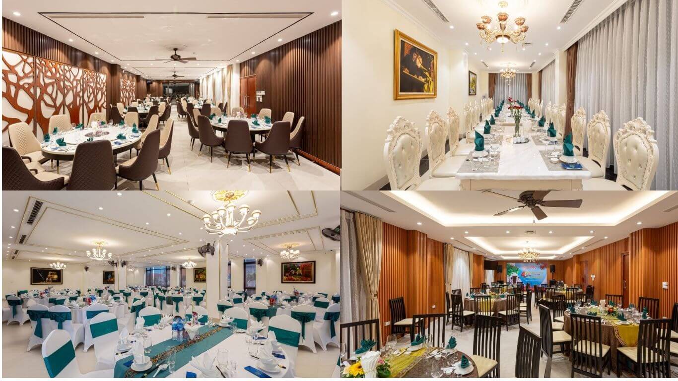 The Paradise Ninh Bình đáp ứng mọi nhu cầu với các phòng ăn thiết kế đa dạng. Từ phòng nhỏ gọn tông trắng cho nhóm ít người,đến phòng trang trọng phối màu trắng và nâu dành cho buổi tiếp khách quan trọng. Ngoài ra,còn có phòng hội trường lớn phù hợp cho tiệc đám cưới,hội nghị. Nhà hàng cũng chú trọng không gian riêng tư và lãng mạn,lý tưởng cho cặp đôi hoặc họp mặt thân mật.
