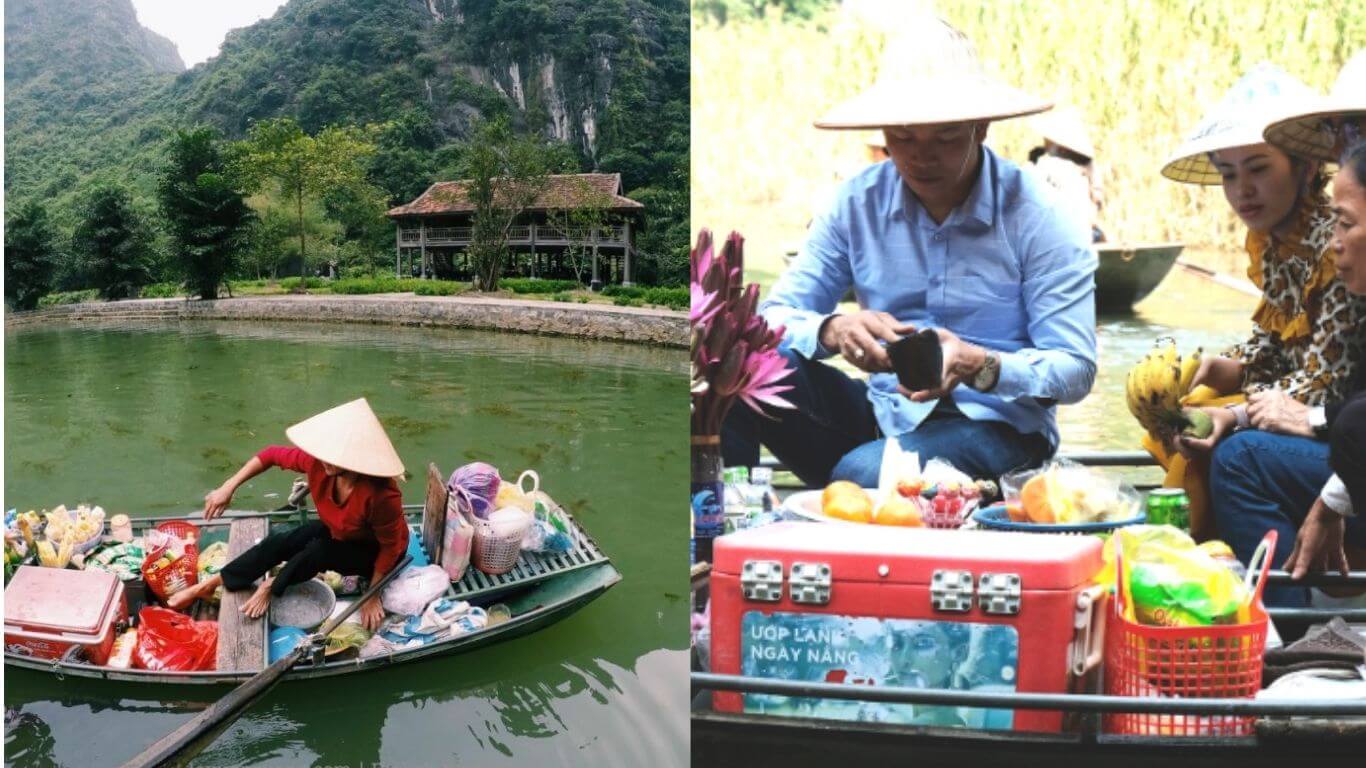 Bên cạnh việc chụp hình,trên sông Tam Cốc còn có những chiếc thuyền nhỏ bán đồ hàng ngày. Đây là nơi bày bán đa dạng các mặt hàng từ đồ lưu niệm,đặc sản địa phương đến các món ăn nhẹ hấp dẫn. Chợ sông thường tập trung tại một điểm cố định cuối hành trình chèo thuyền,tạo nên không khí náo nhiệt và thân thiện. Mặc dù hình thức buôn bán này khá độc đáo và đơn giản,nhưng giá cả hợp lý khiến du khách cảm thấy dễ chịu khi dừng chân mua sắm và thưởng thức những sản phẩm đặc sắc.