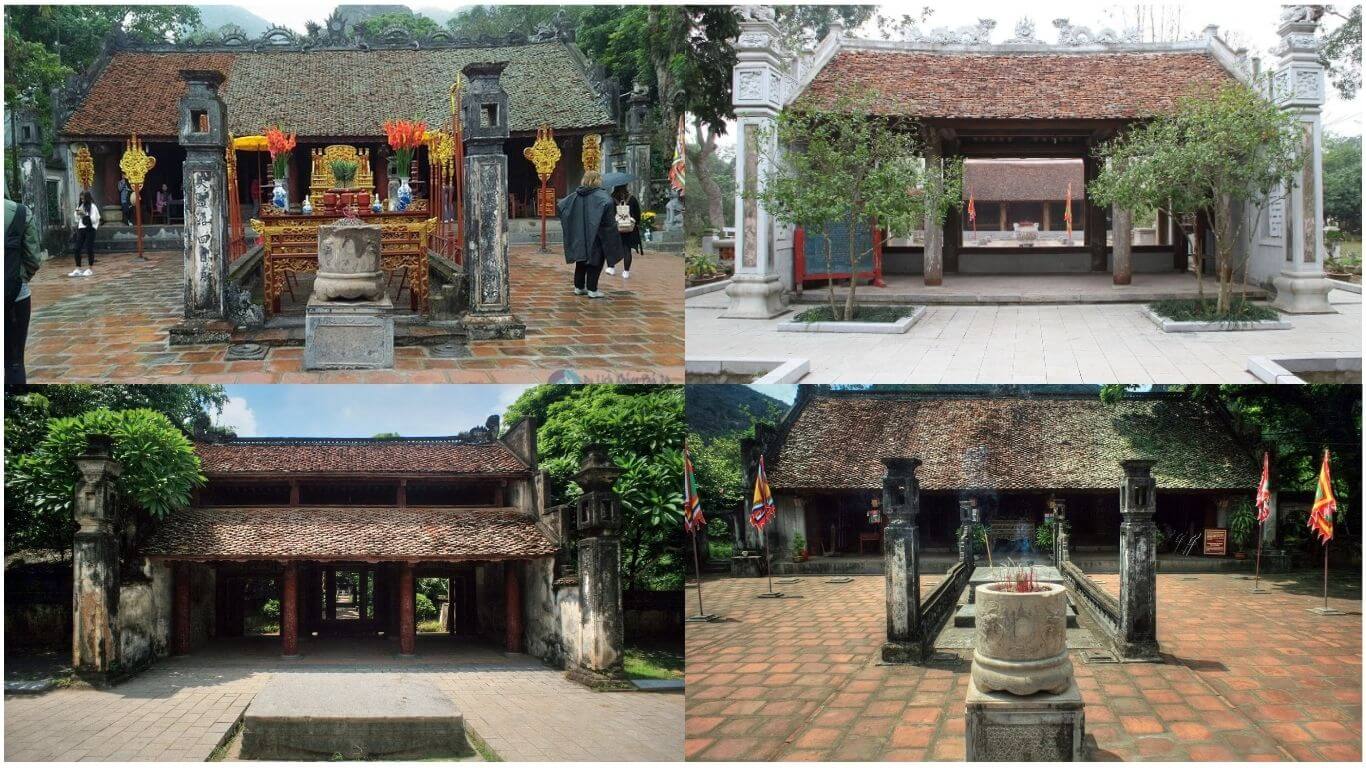 Tòa Bái đường có năm gian rộng lớn,là nơi đặt ba tấm biển sơn son thếp vàng mang ý nghĩa sâu sắc. Những tấm biển này đều được viết bằng chữ Hán,thể hiện những giá trị tâm linh và lịch sử của triều đại Tiền Lê. Tiếp theo là tòa Thiêu hương,được xây dựng theo lối kiến trúc ống muống cổ xưa,mang đến sự linh thiêng và trang trọng. Tại đây,du khách sẽ thấy nơi thờ tứ trụ triều Tiền Lê,những người có vai trò quan trọng trong việc duy trì và phát triển triều đại.