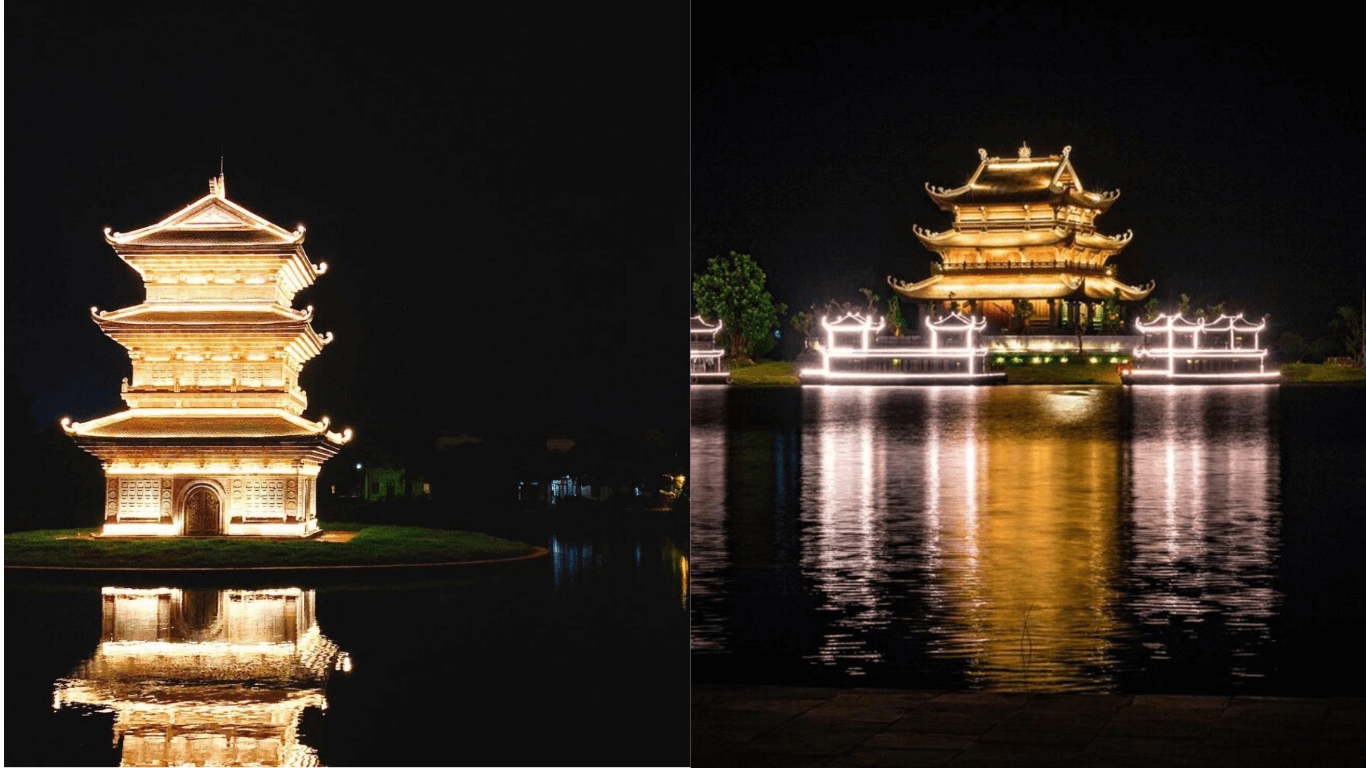 Khi màn đêm buông xuống,Chùa Vàng lại mang một dáng vẻ khác,tĩnh lặng và trầm mặc hơn. Ánh đèn vàng nhẹ nhàng chiếu sáng ngôi chùa,tạo nên khung cảnh huyền bí nhưng không kém phần linh thiêng. Mặt nước lúc này lấp lánh ánh sáng,phản chiếu hình bóng của ngôi chùa và những dãy núi xa xa,mang lại cảm giác an yên cho những ai đến chiêm ngưỡng. Chính những khoảnh khắc này đã khiến Chùa Vàng trở thành một trong những địa điểm du lịch nổi tiếng,thu hút đông đảo du khách đến tham quan và chiêm bái.